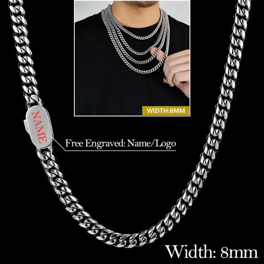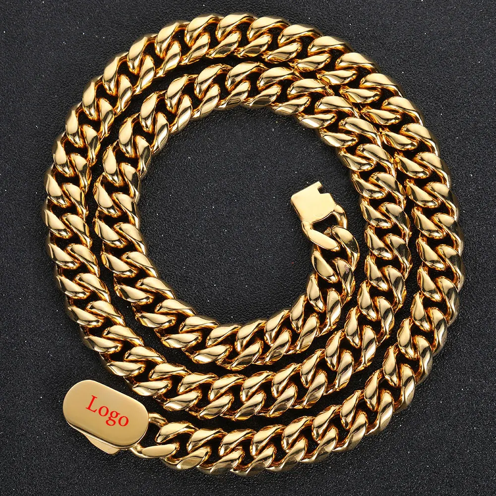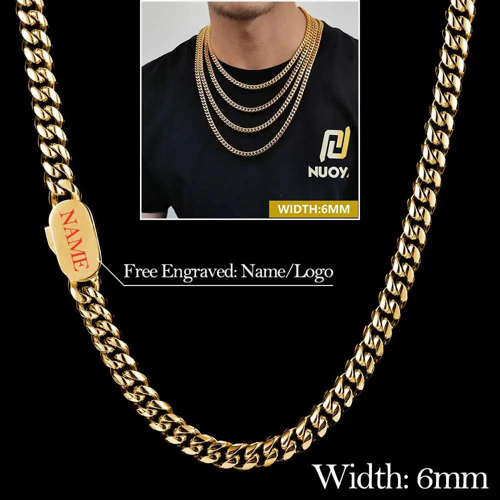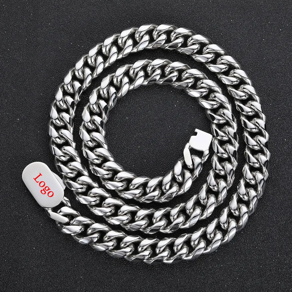Man Chain Custom Logo Necklace 316L Stainless Steel Miami Curb Cuban Link Chain Golden Necklace Fashion Jewelry Gift