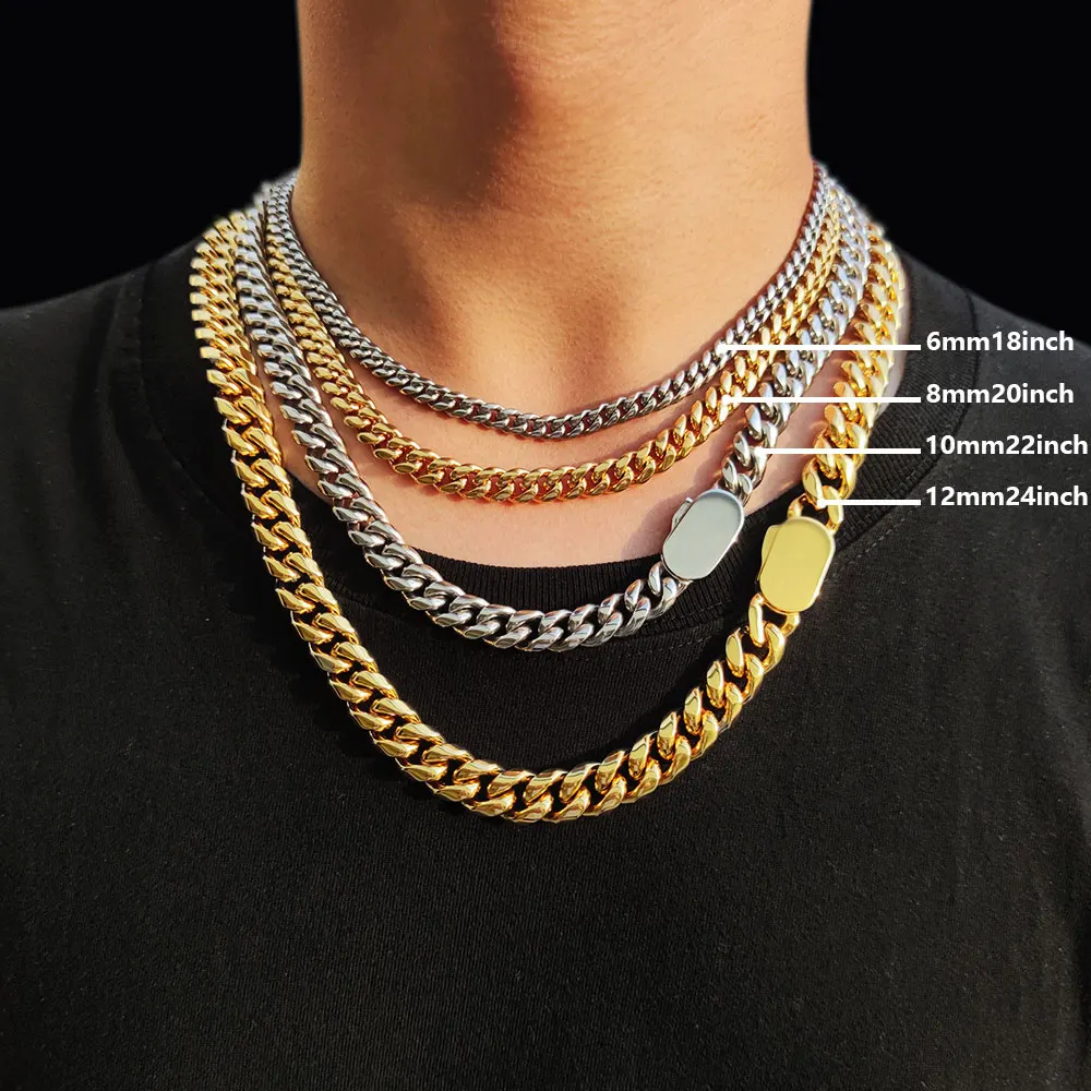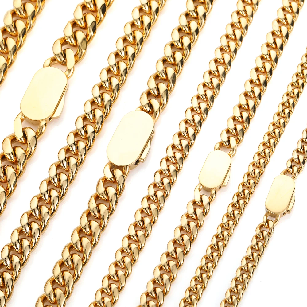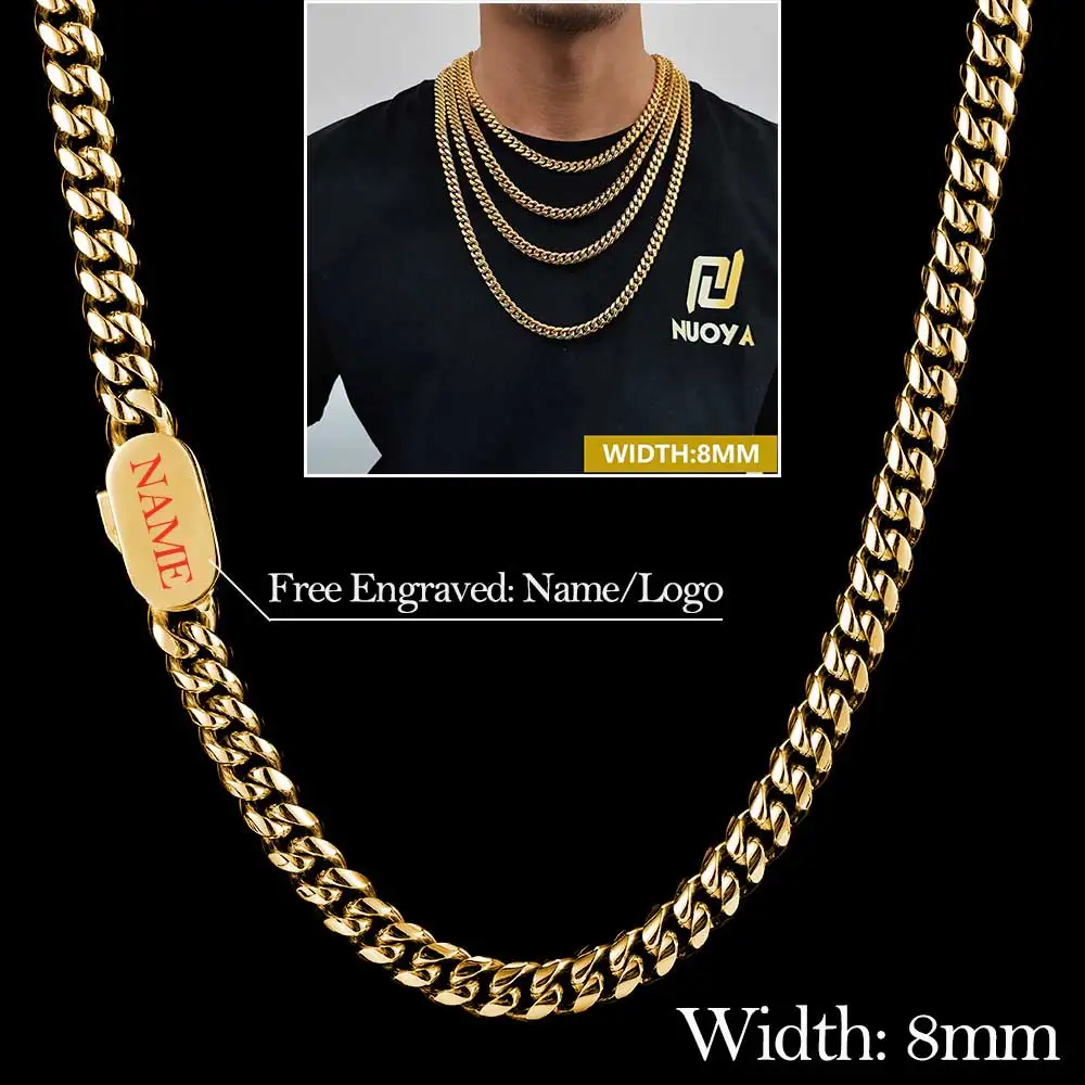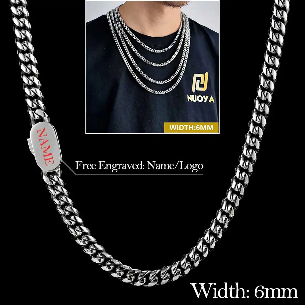 Man Chain Custom Logo Necklace 316L Stainless Steel Miami Curb Cuban Link Chain Golden Necklace Fashion Jewelry Gift