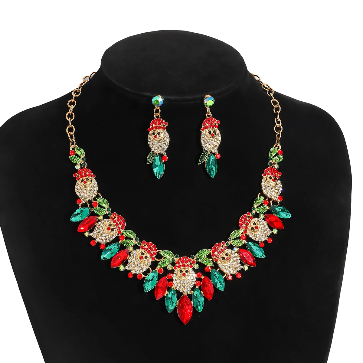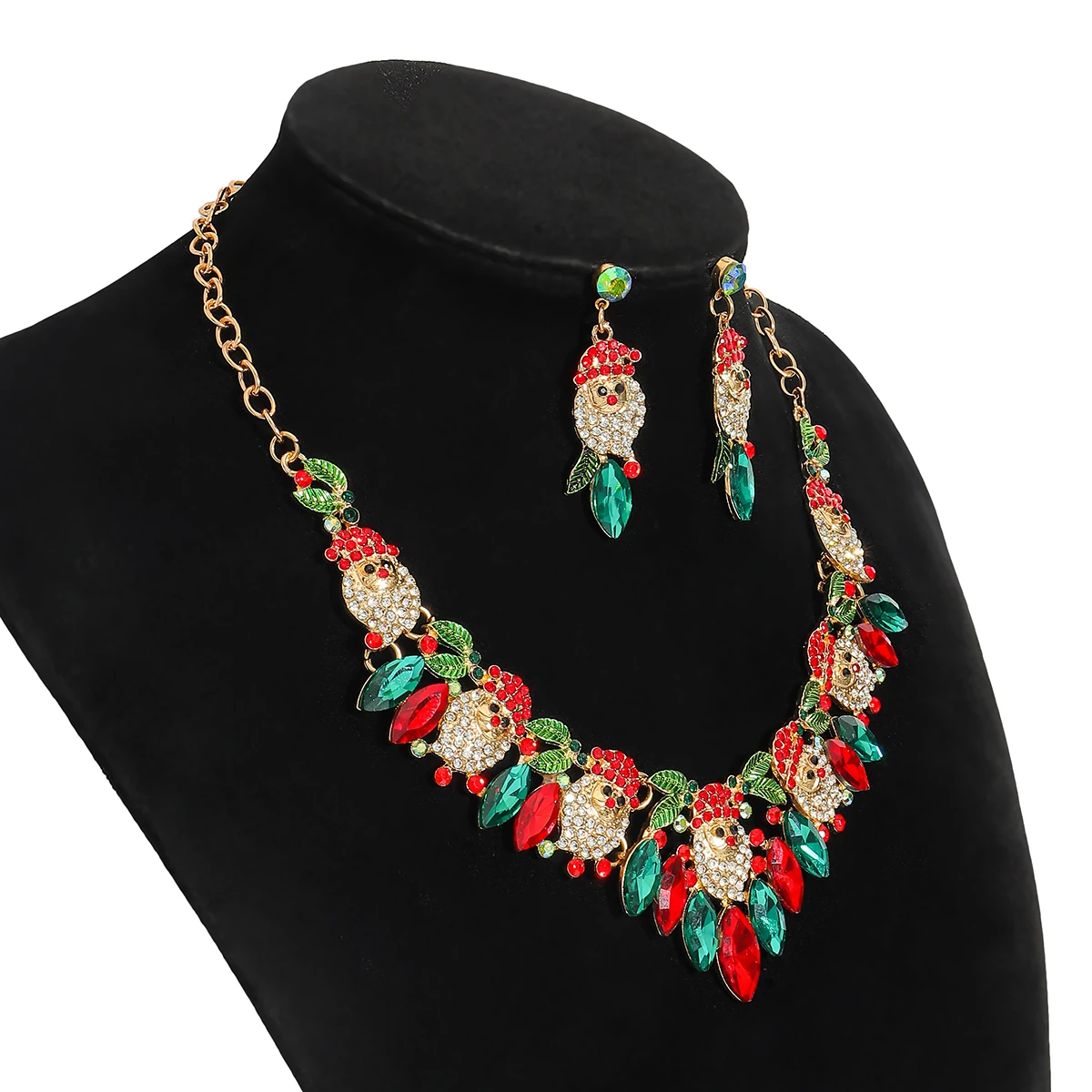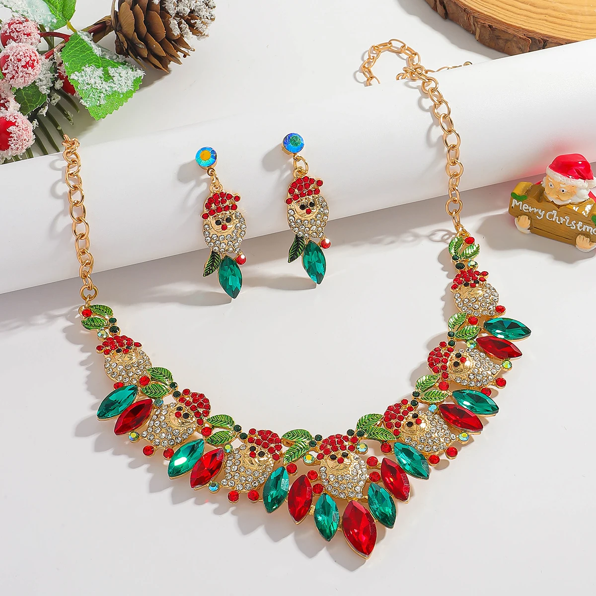 • 3Pcs Vedawas Christmas Rhinestone Enamel Necklace Earrings Set Cute Santa Claus Crystal Dangle Necklace Festival Gifts For Girls
