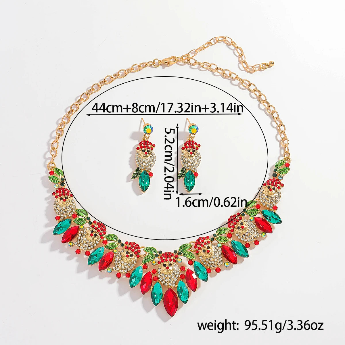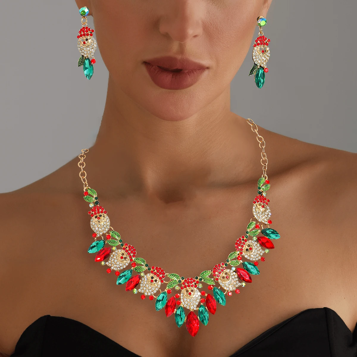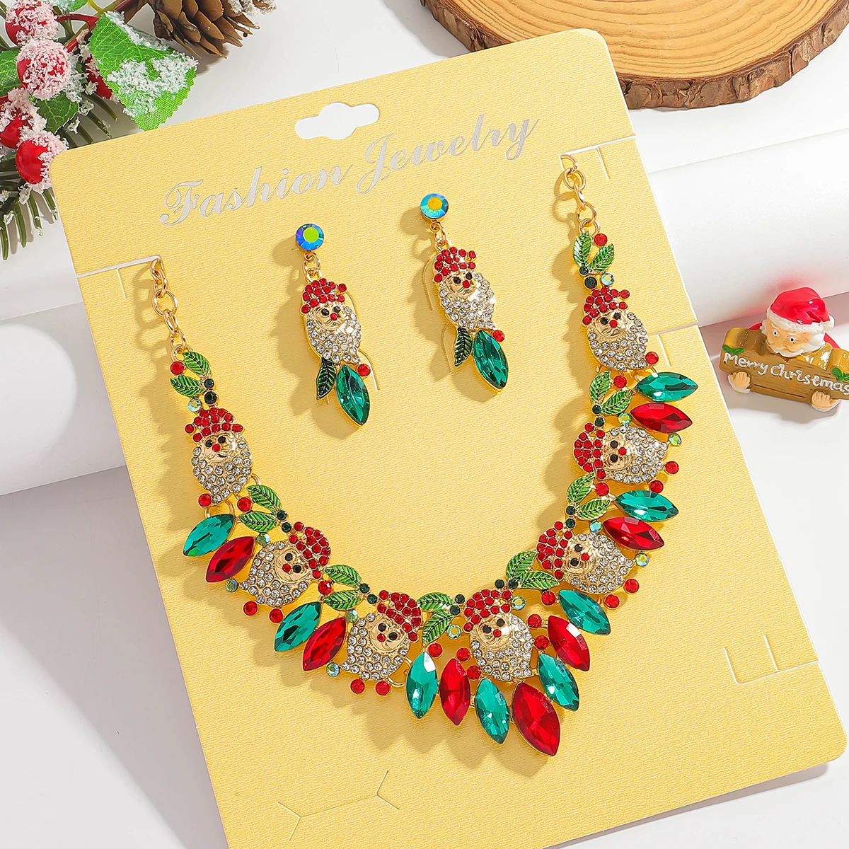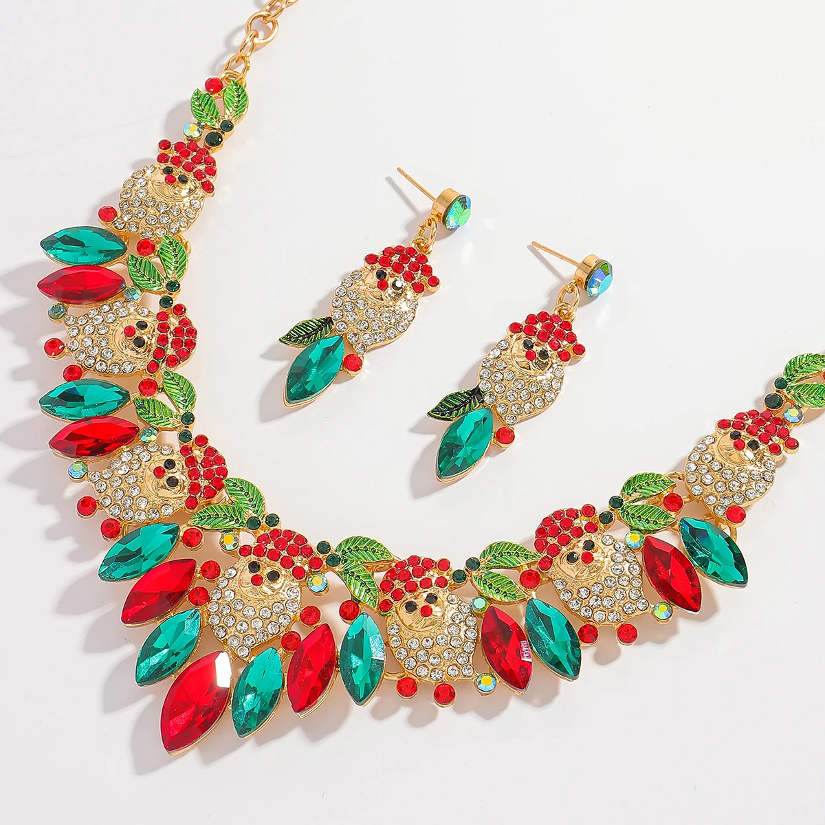 • 3Pcs Vedawas Christmas Rhinestone Enamel Necklace Earrings Set Cute Santa Claus Crystal Dangle Necklace Festival Gifts For Girls