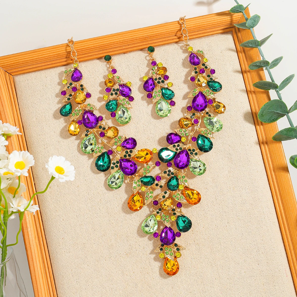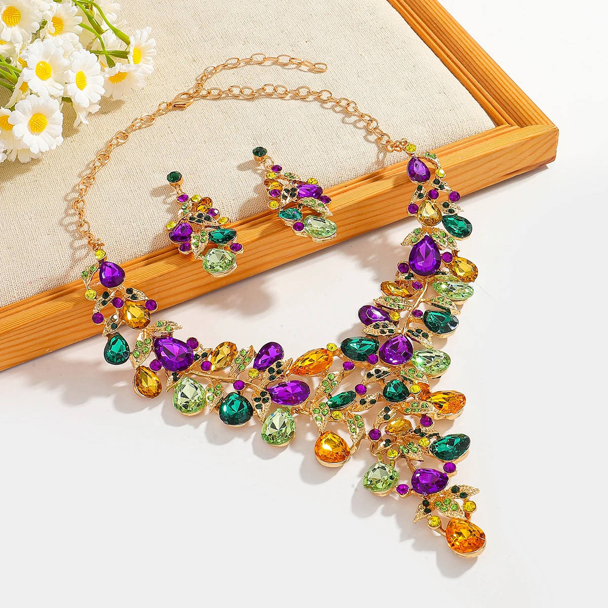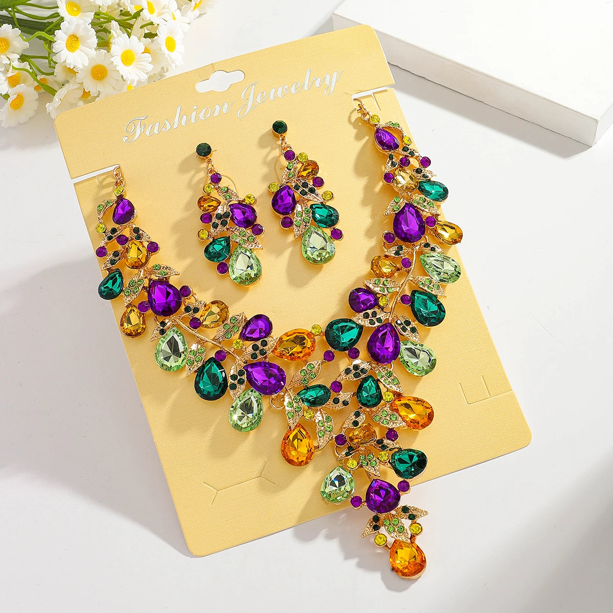 2025 Carnival Bling Colorful Rhinestone Necklace Earrings Jewelry Set for Women High luxury Banquet Party Match with Dress