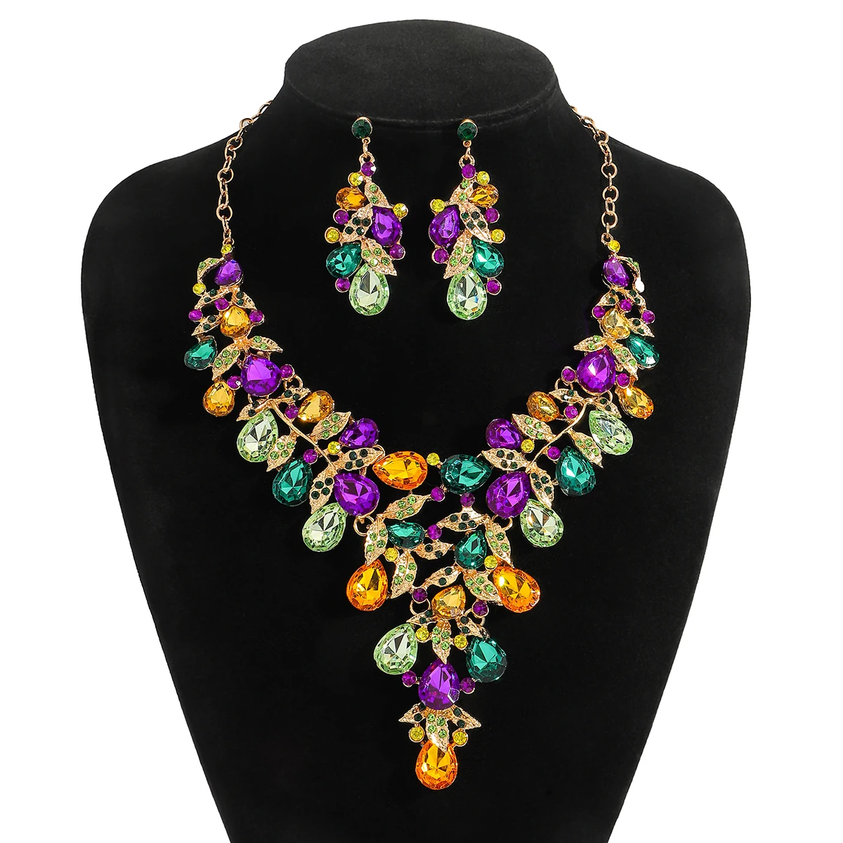 • 2025 Carnival Bling Colorful Rhinestone Necklace Earrings Jewelry Set for Women High luxury Banquet Party Match with Dress