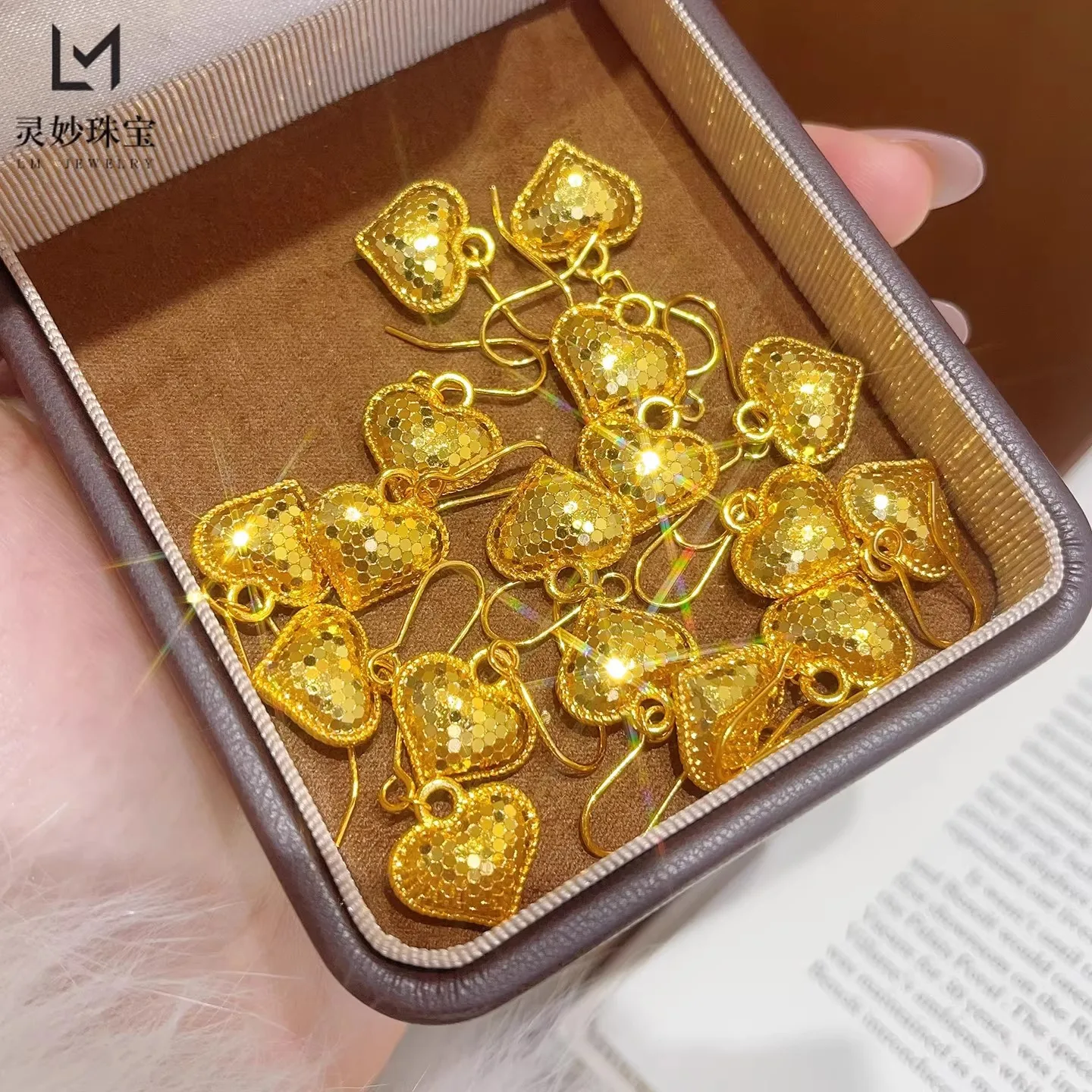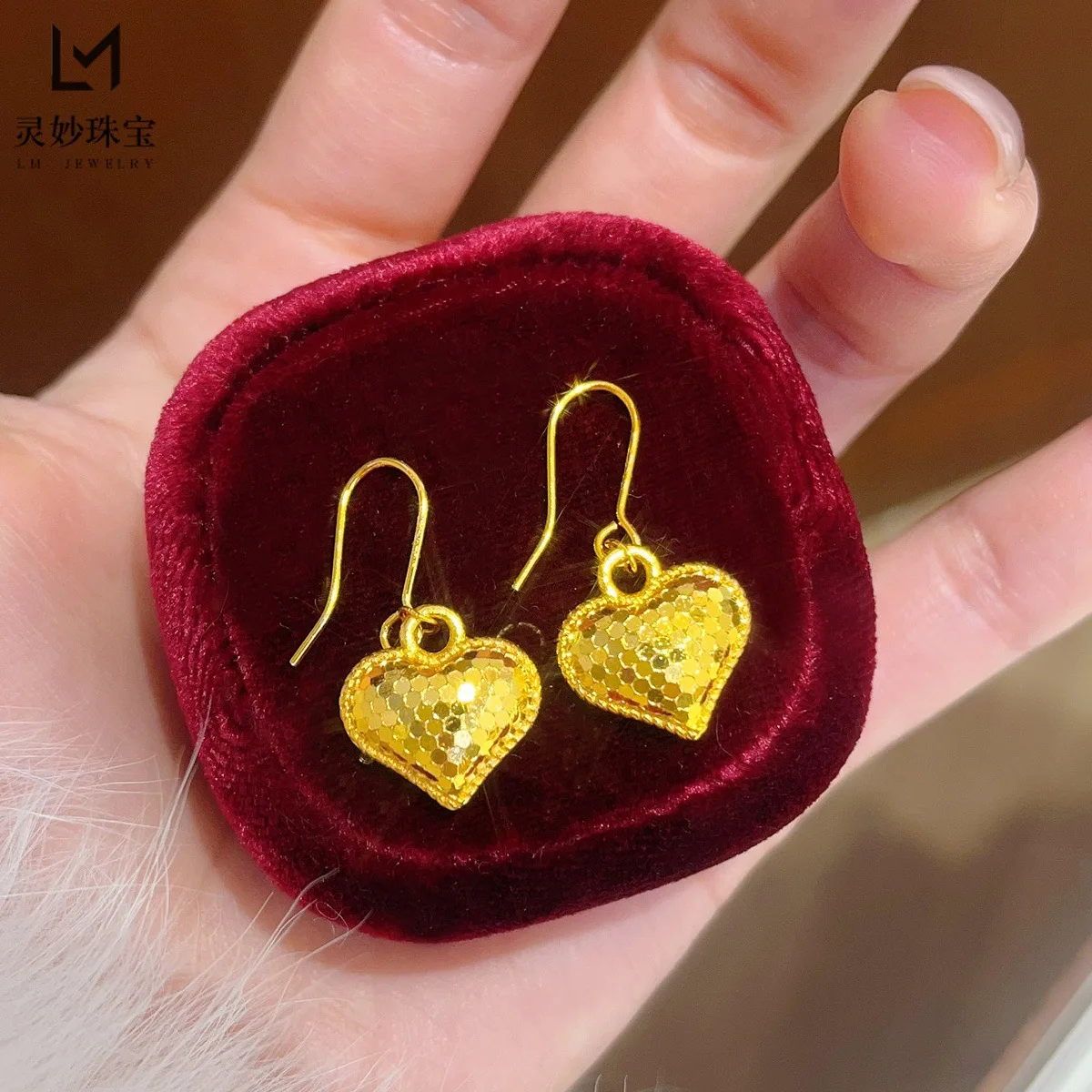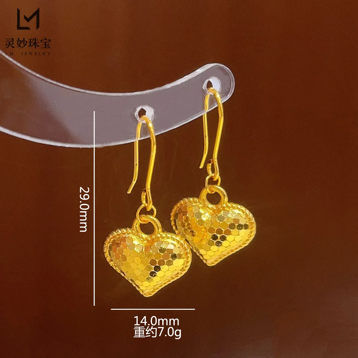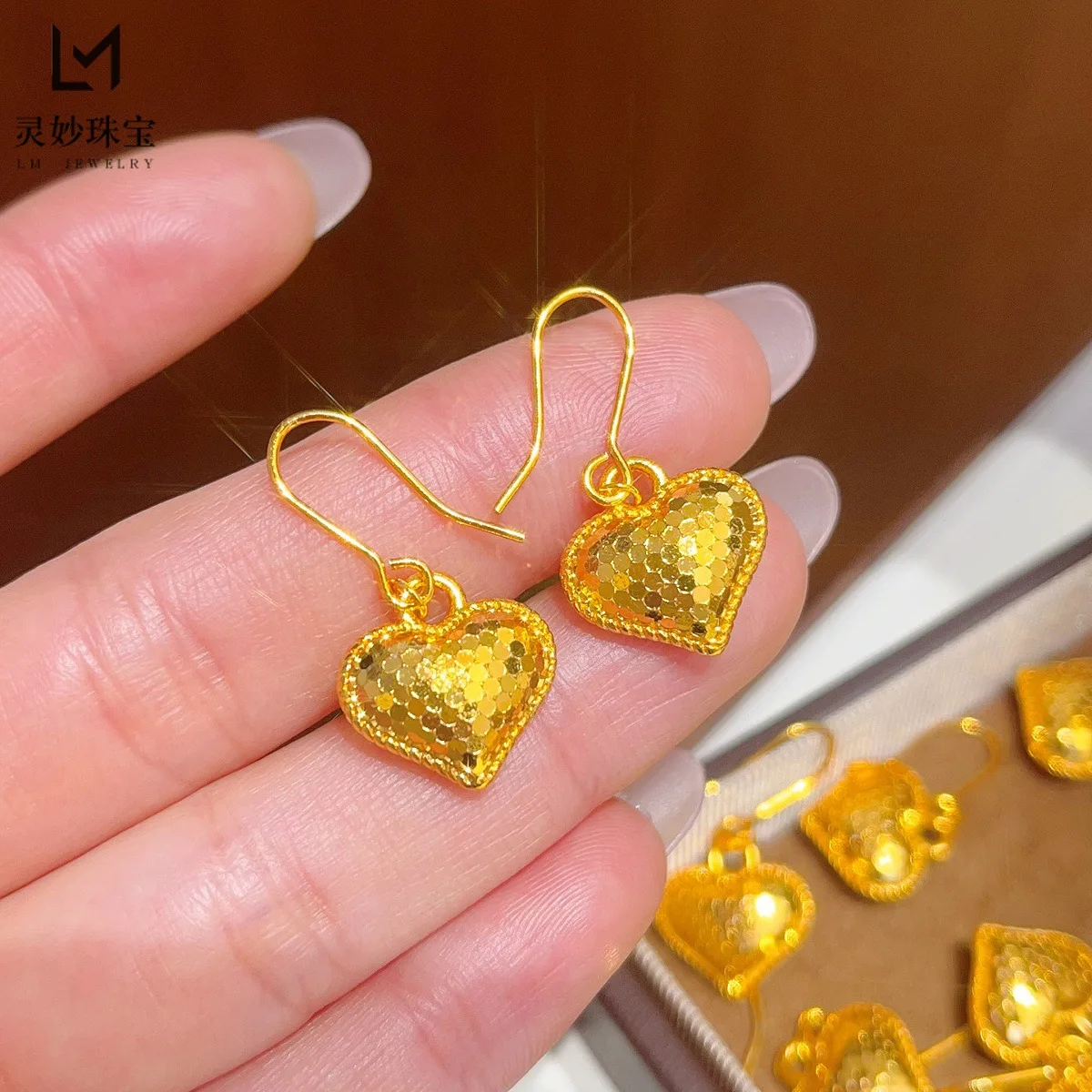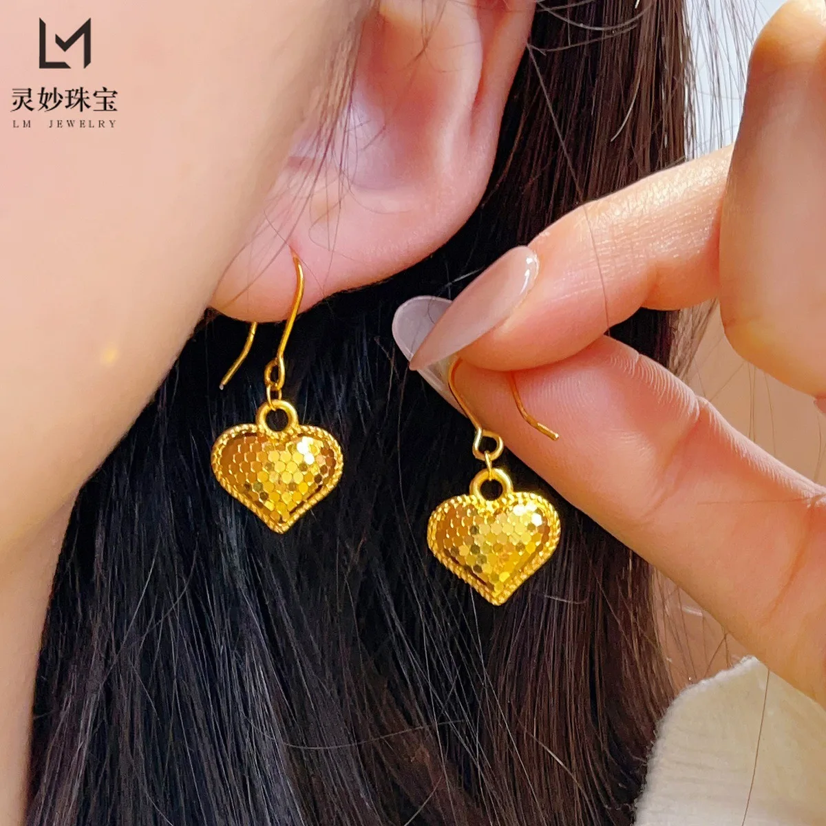 • Dragon Scale Heart Ear Hooks Women's 24K Gold AU999 - Pure gold heart scale earrings, unique design perfect gift for girlfriends