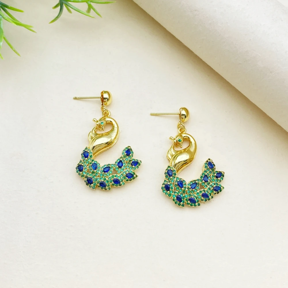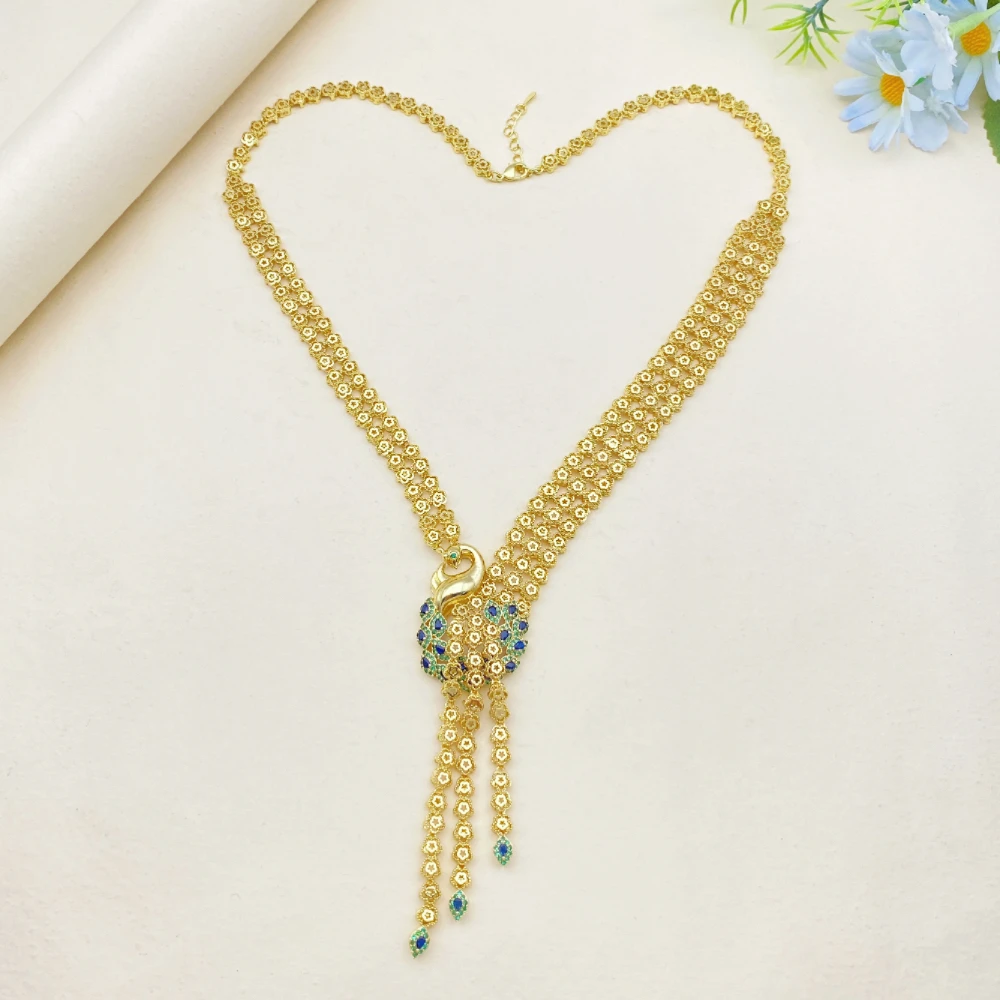 African Wedding Jewelry Set Peacock Shaped Gold-Plated Copper Artificial Zircon Bracelet Ring Necklace Earrings