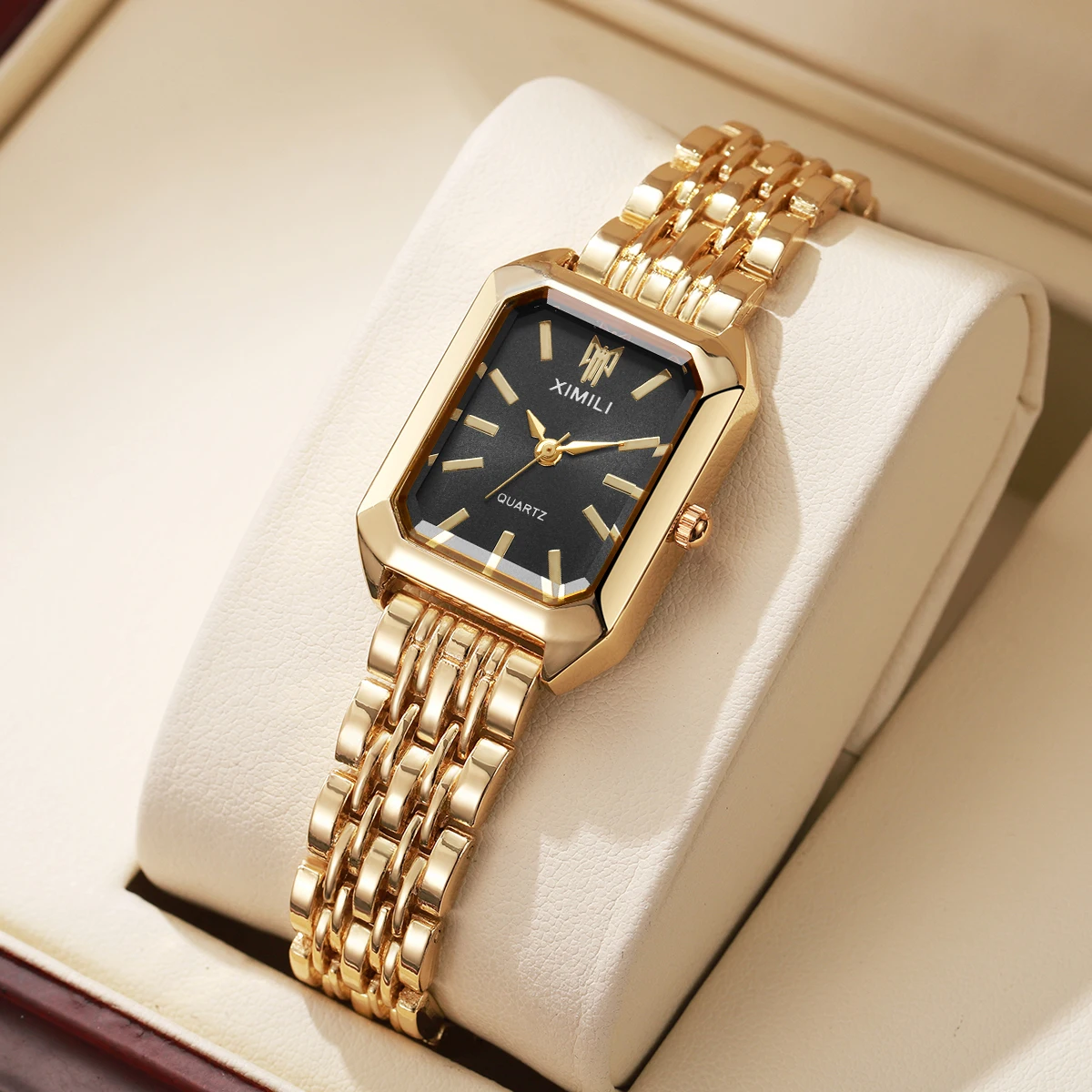 • 1/2/4PCS Luxury Women Watches Fashion Rectangle Woman Quartz Watch Stainless Steel Band Wristwatches Reloj Mujer(Without Box)