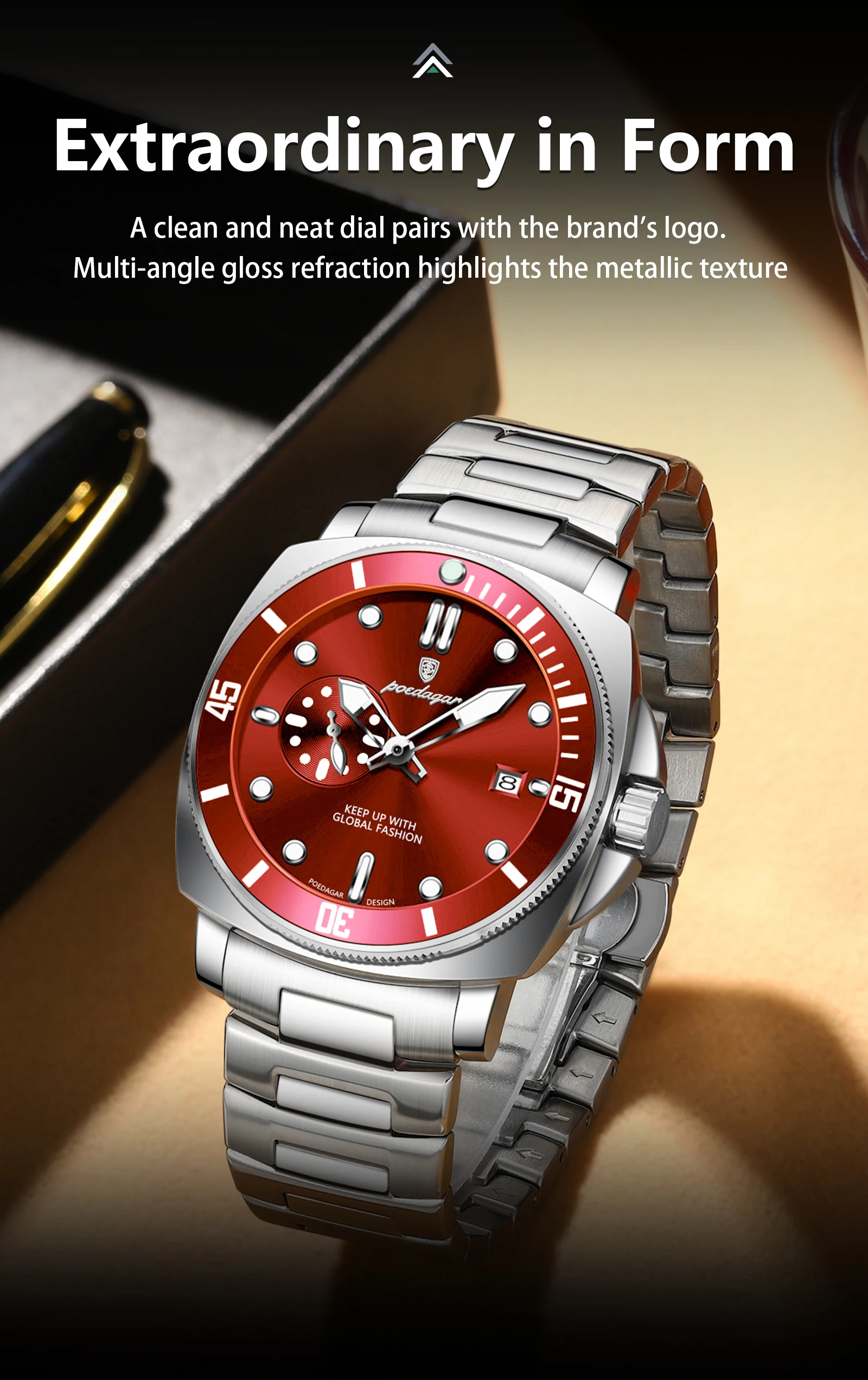 • Luxury Trendy Men Watch Waterproof Luminous Date Stainless Steel Male Watch Quartz Business Sports Men's Watches Reloj