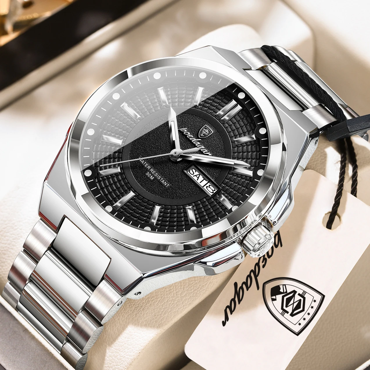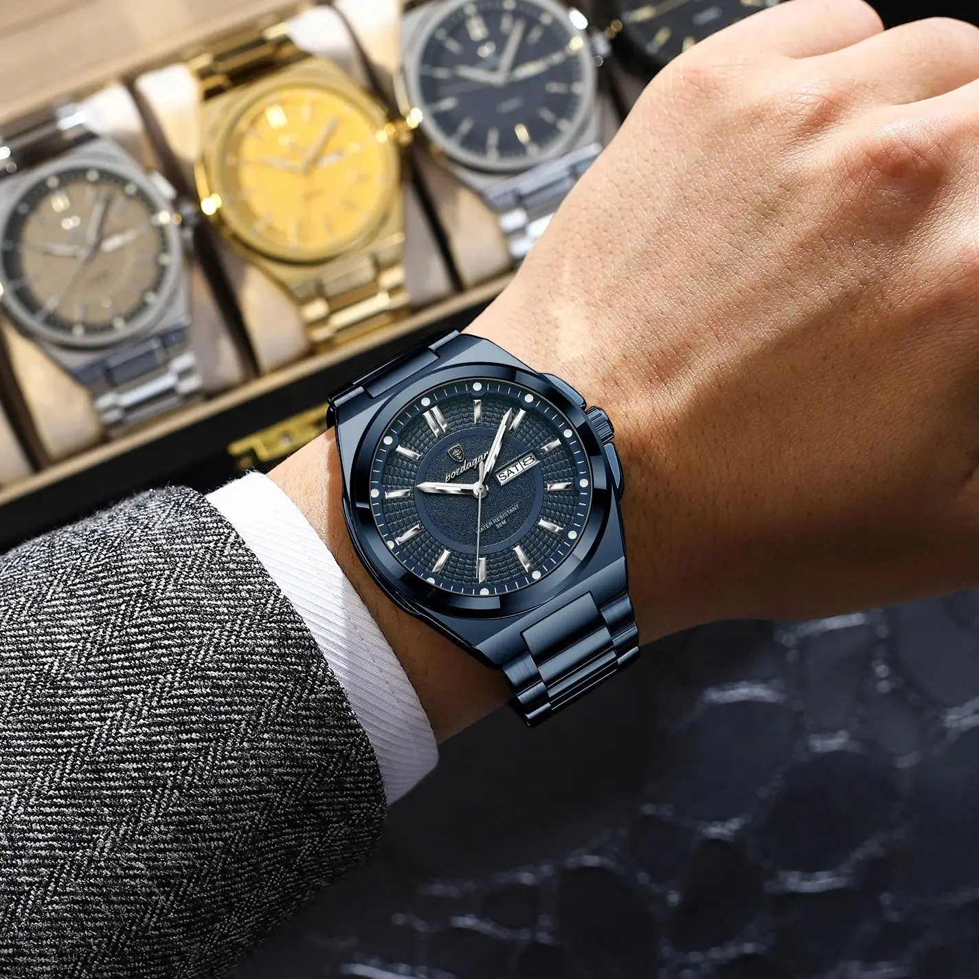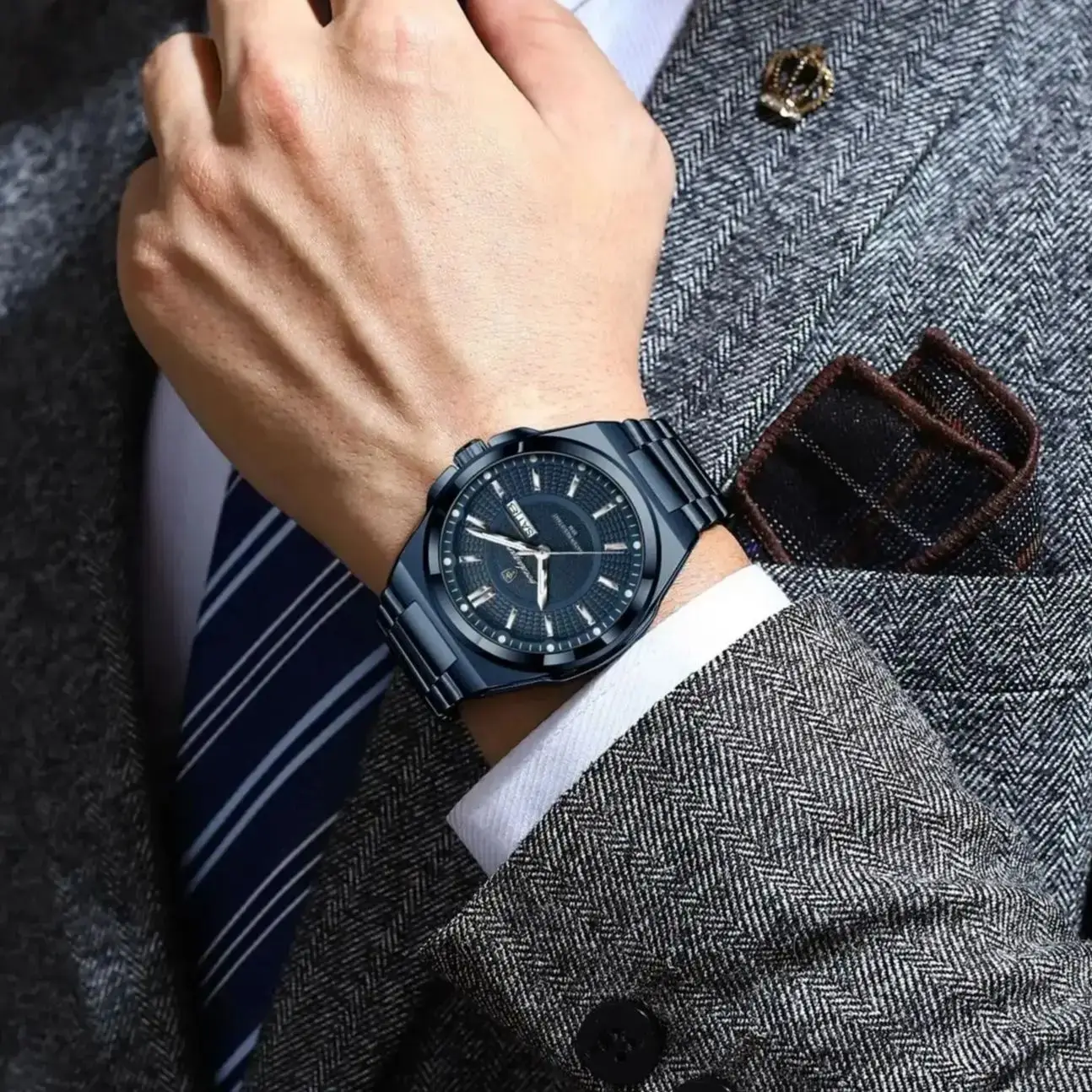 • Top Business Men Wristwatch Stainless Steel Waterproof Luminous Casual Man Watch Date Week Stylish Men's Quartz Watches