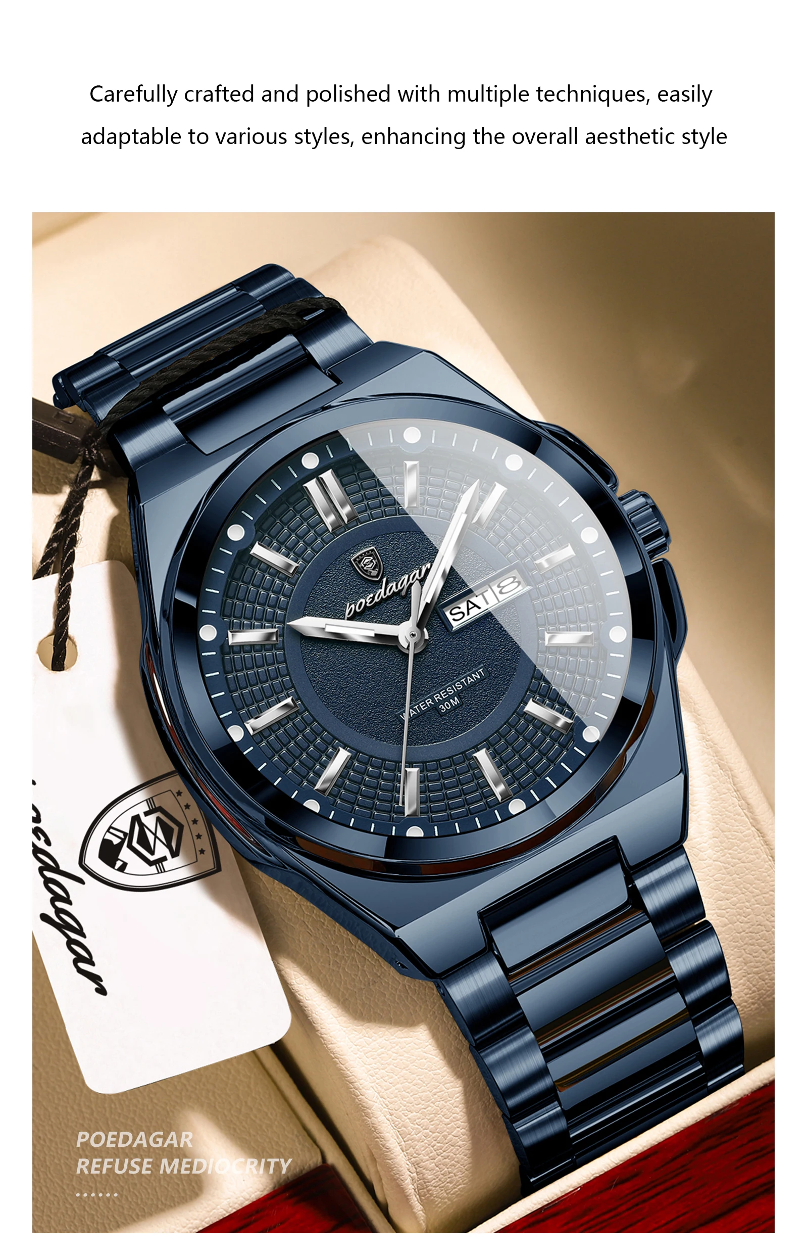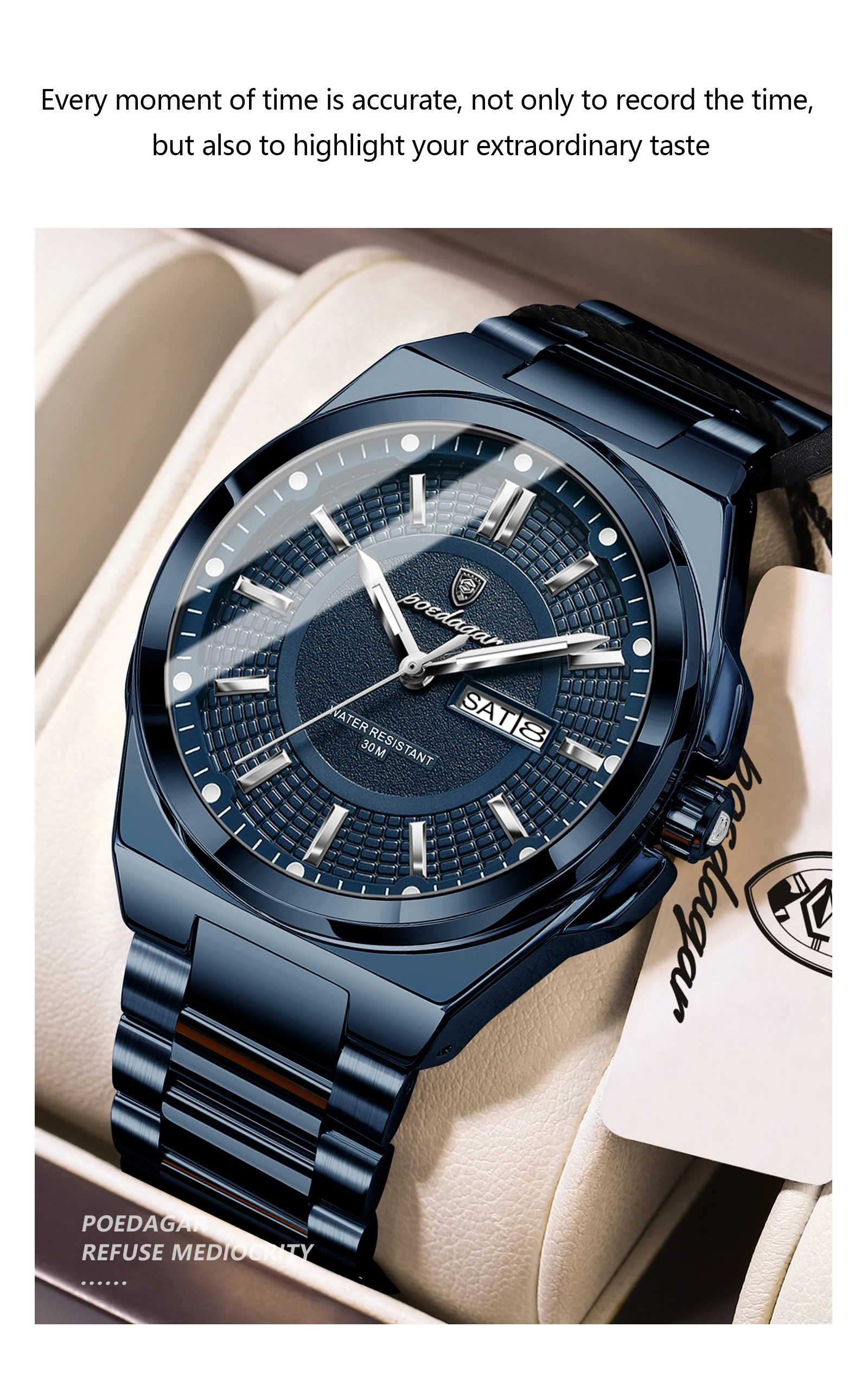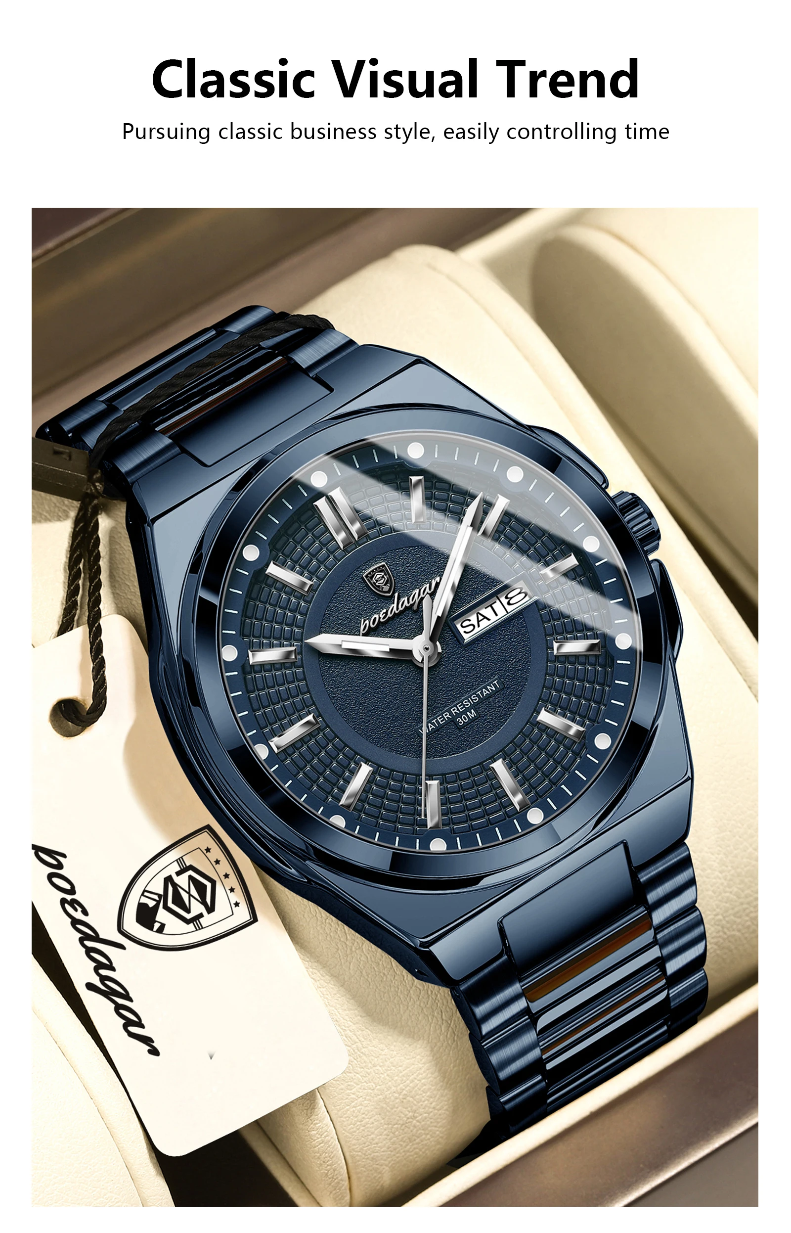 • Top Business Men Wristwatch Stainless Steel Waterproof Luminous Casual Man Watch Date Week Stylish Men's Quartz Watches