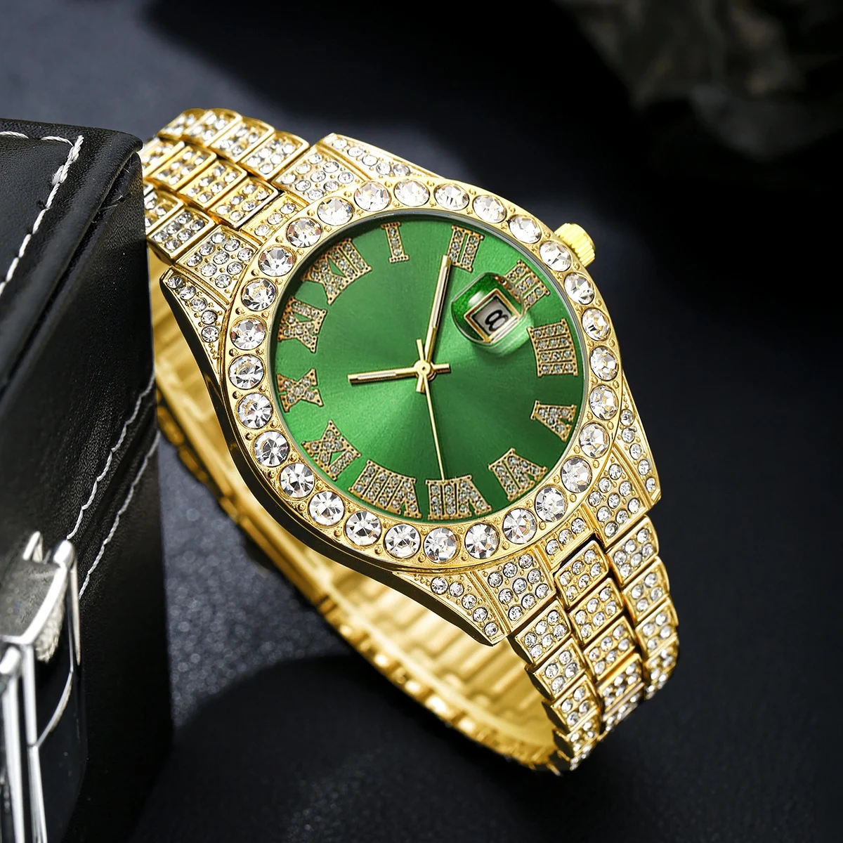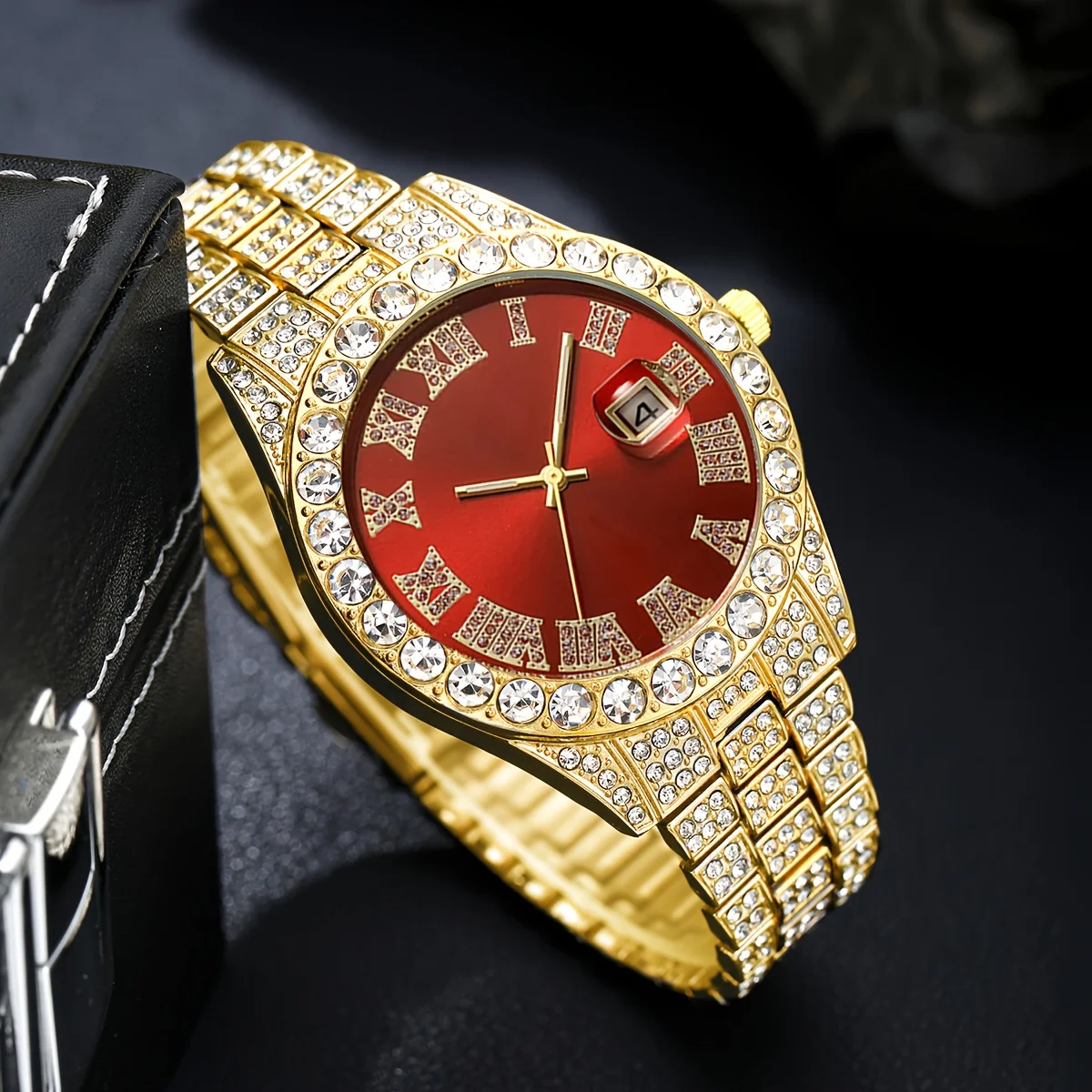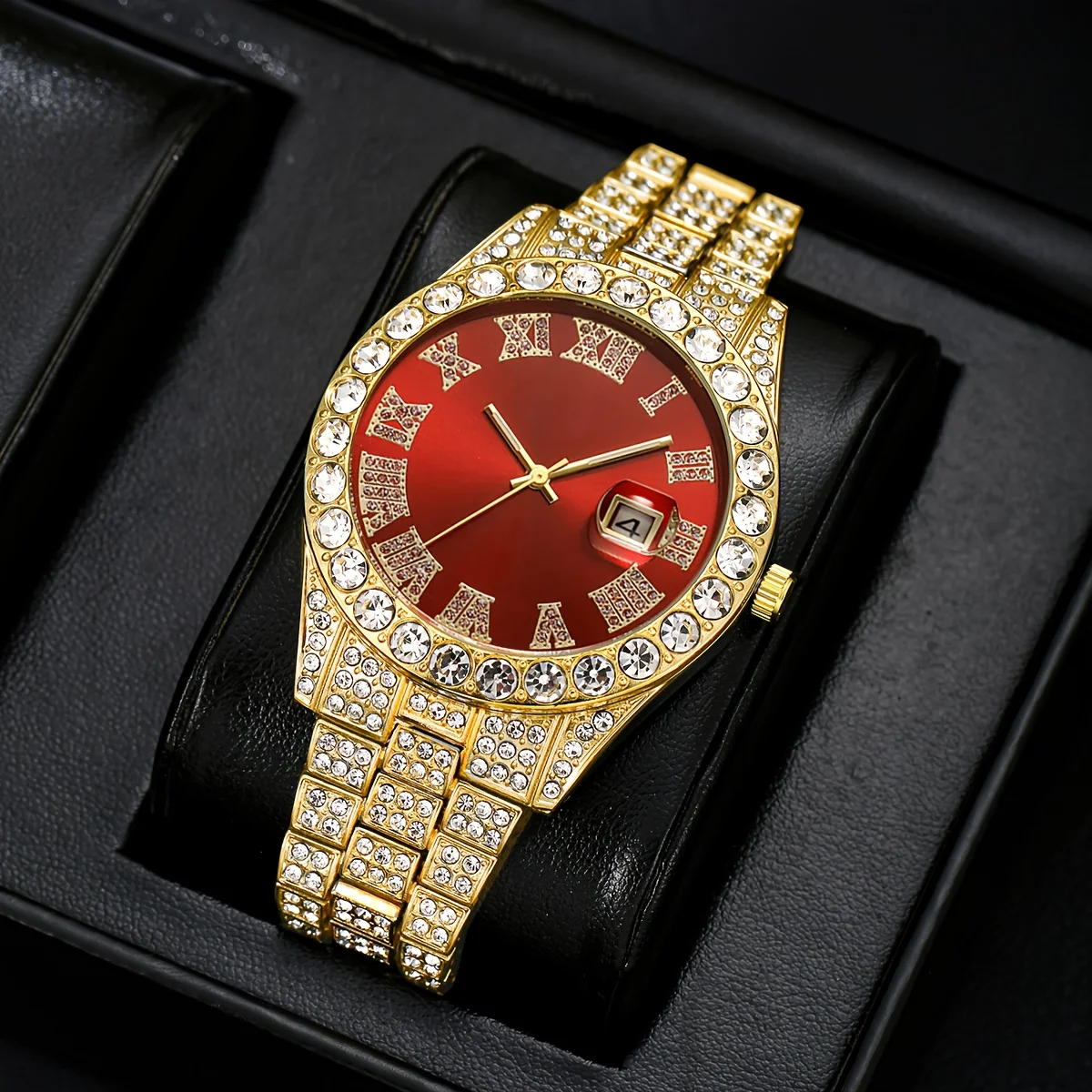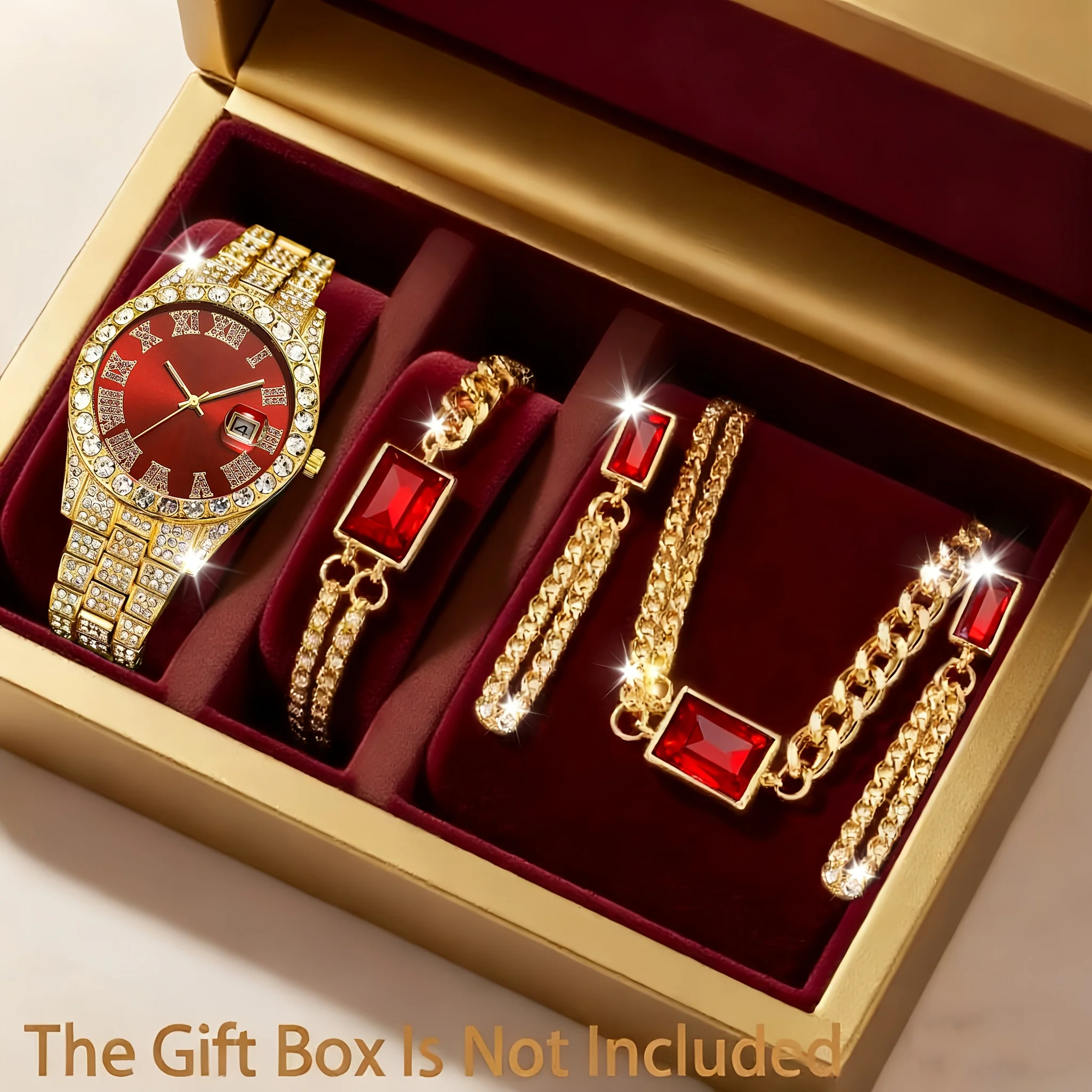 • 5PCS/Set Luxury Full Diamond Large Dial Women Watches Stainless Steel Band Calendar Quartz Wristwatch Jewelry Set(Without Box)