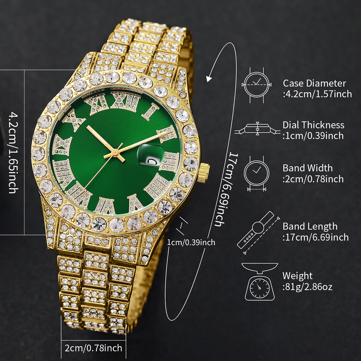 5PCS/Set Luxury Full Diamond Large Dial Women Watches Stainless Steel Band Calendar Quartz Wristwatch Jewelry Set(Without Box)