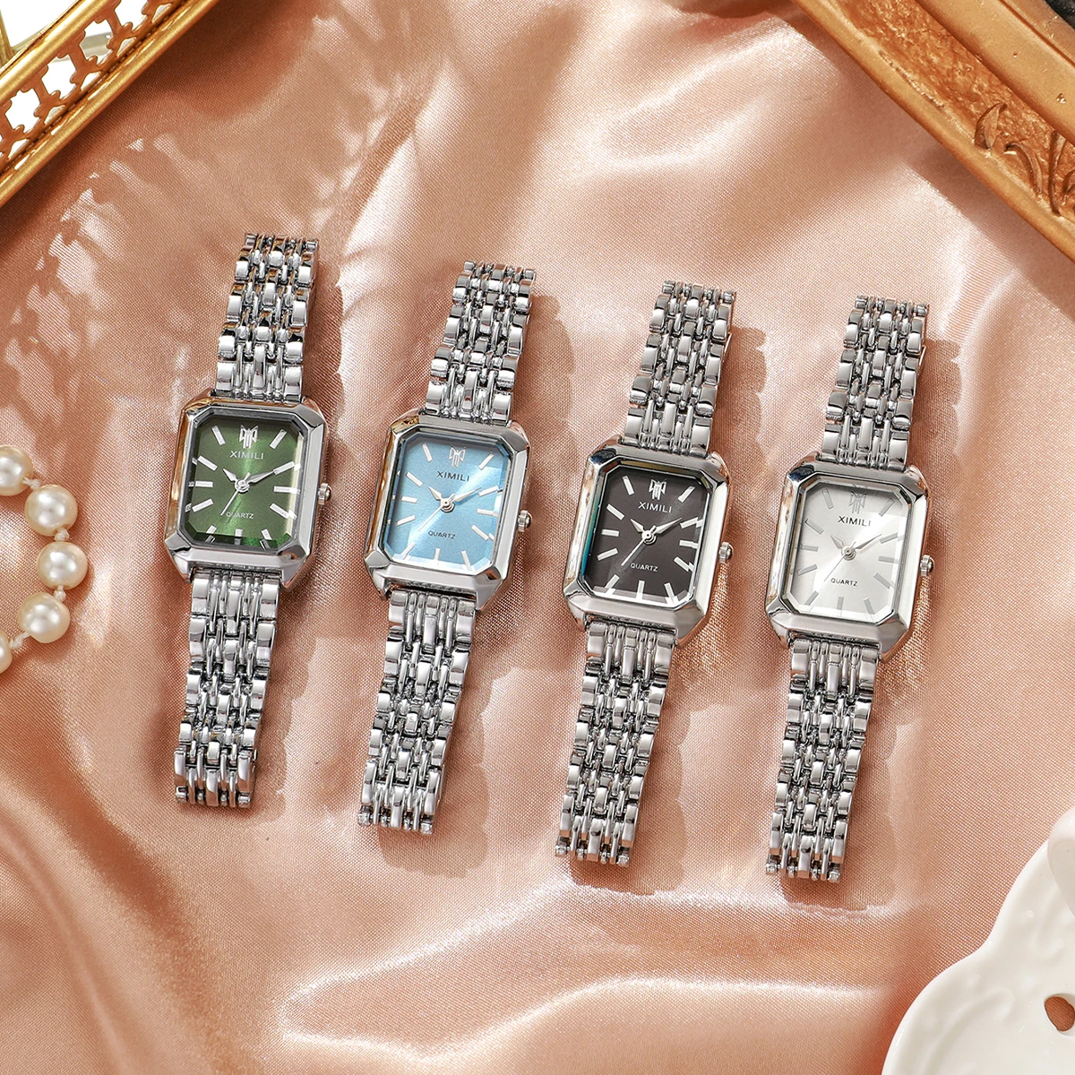 • 1/2/4PCS Elegant Rectangle Woman Quartz Watch Luxury Stainless Steel Band Ladies Wristwatches Reloj Mujer(Without Box)