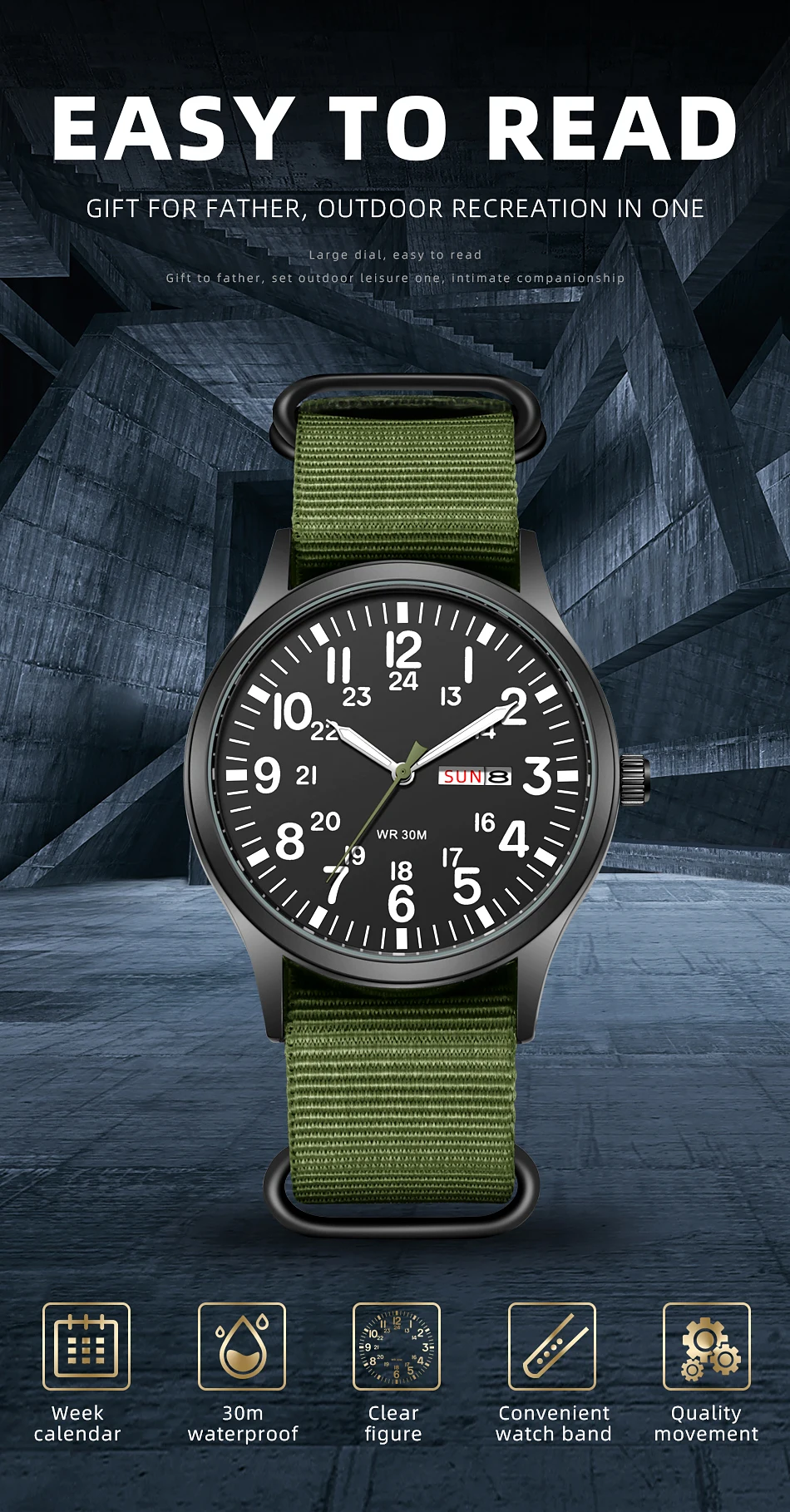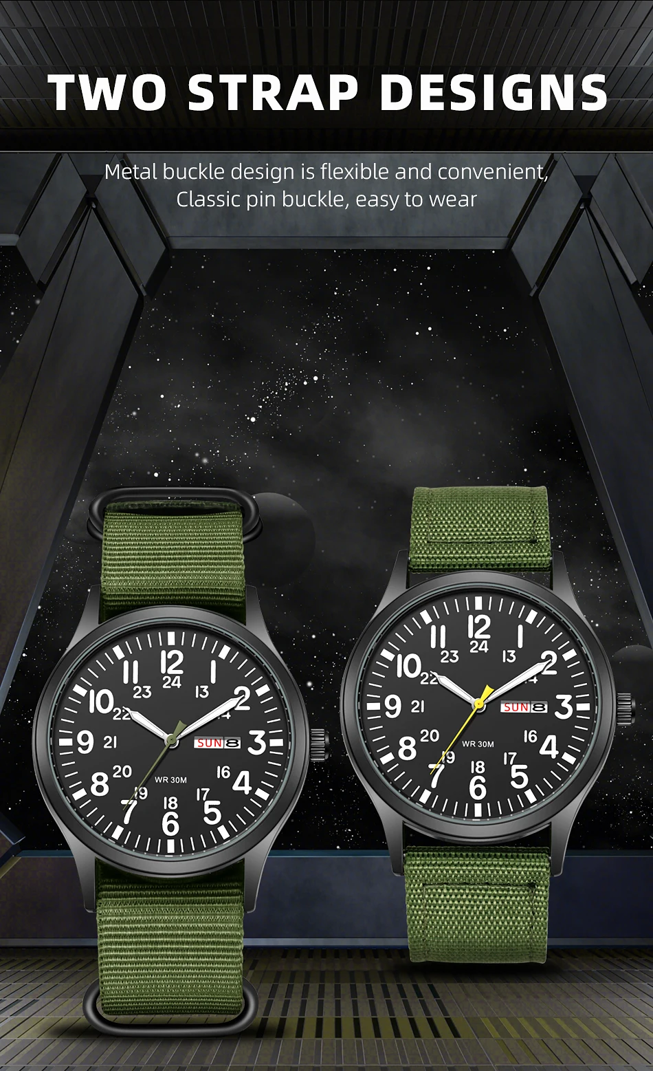 Military ballistic nylon strap with matte buckle features durable, dirt & wet resistant and fit up to 8 inch wrist circumference