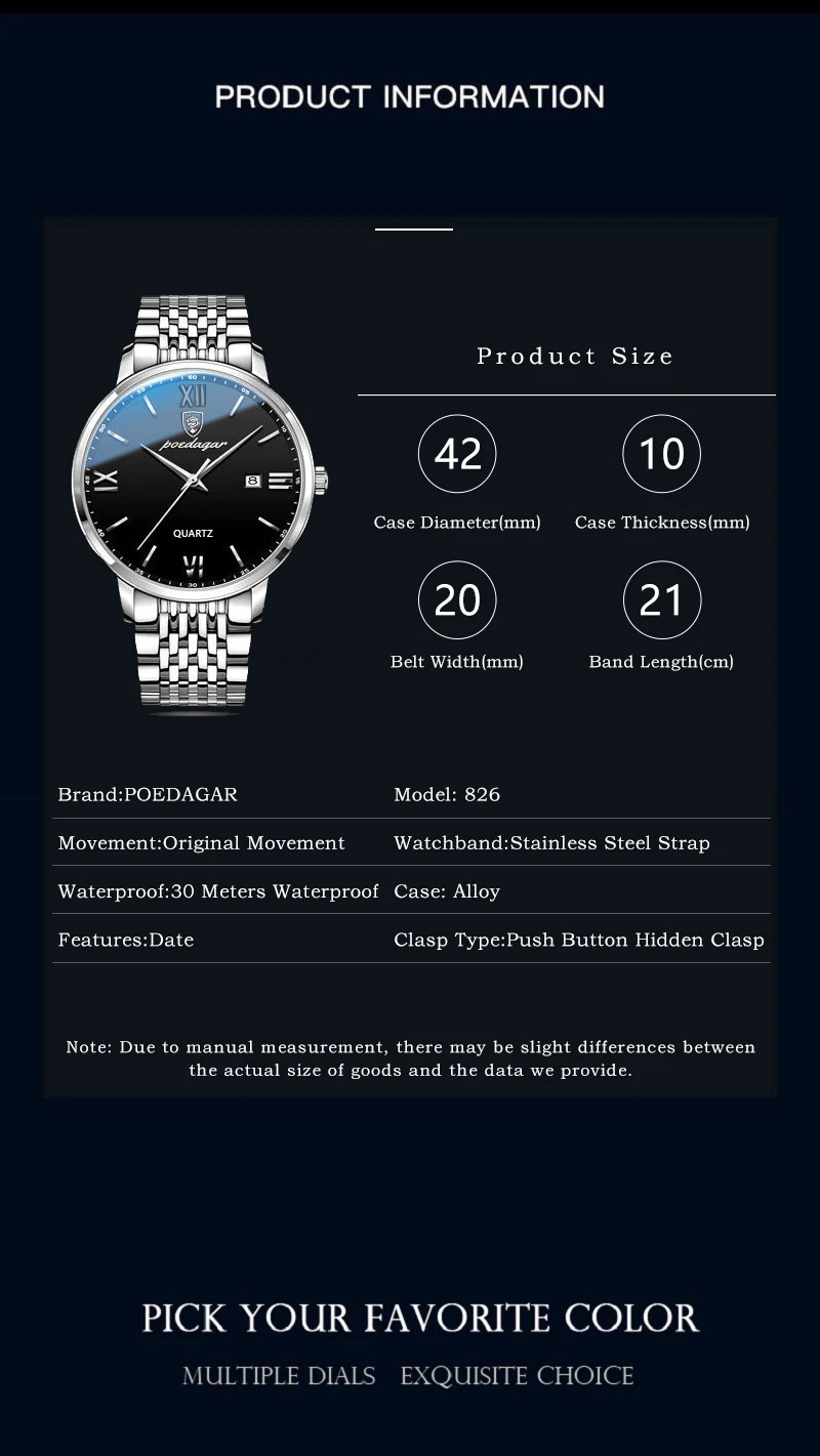 • Luxury Sports Men's Wristwatch Stainless Steel Waterproof Date Man Watch High Quality Casual Fashion Quartz Men Watches