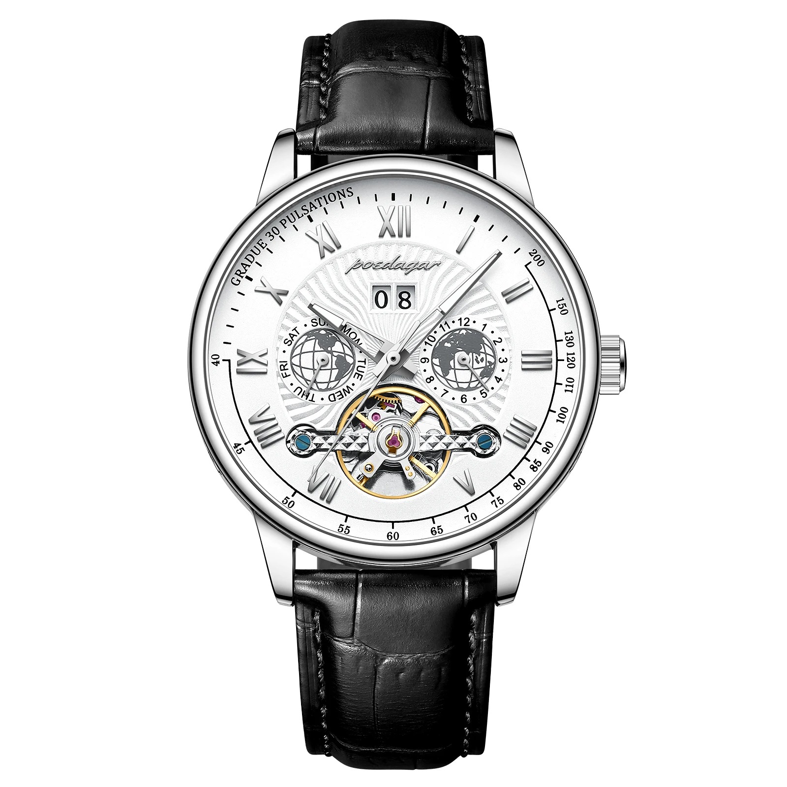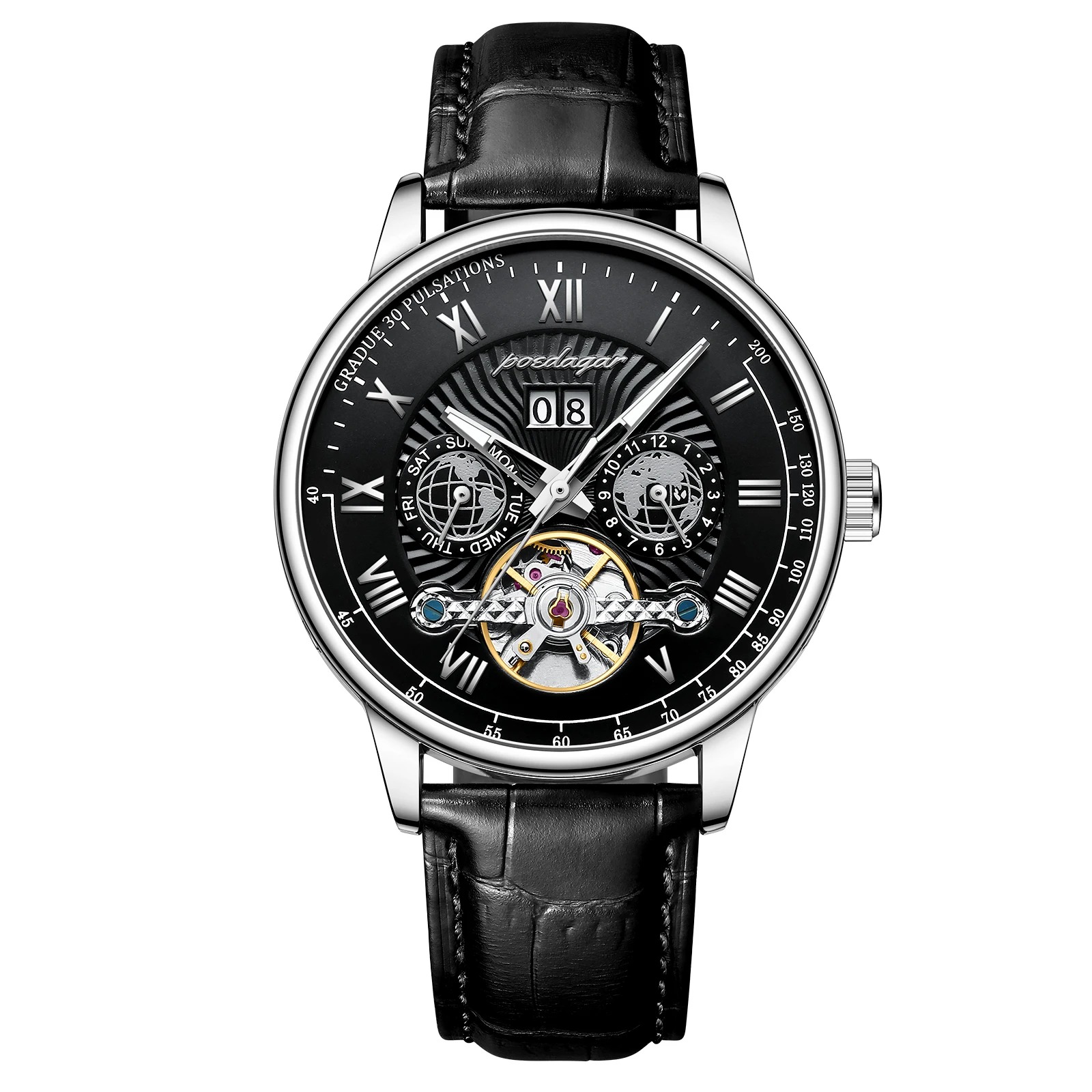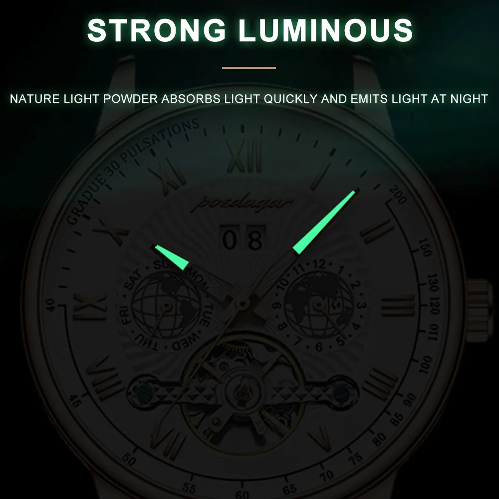 • Automatic Mechanical Tourbillon Business Watch Casual Date&Week&Month Luminous Waterproof Leather Men Watch Hot Relojes