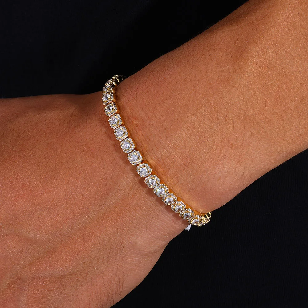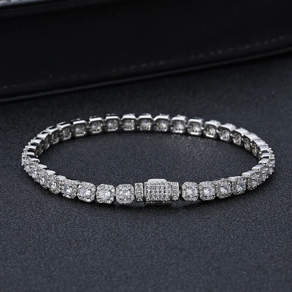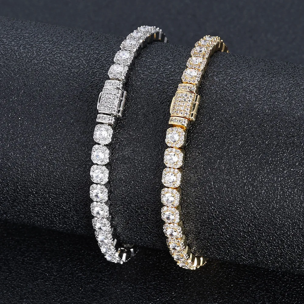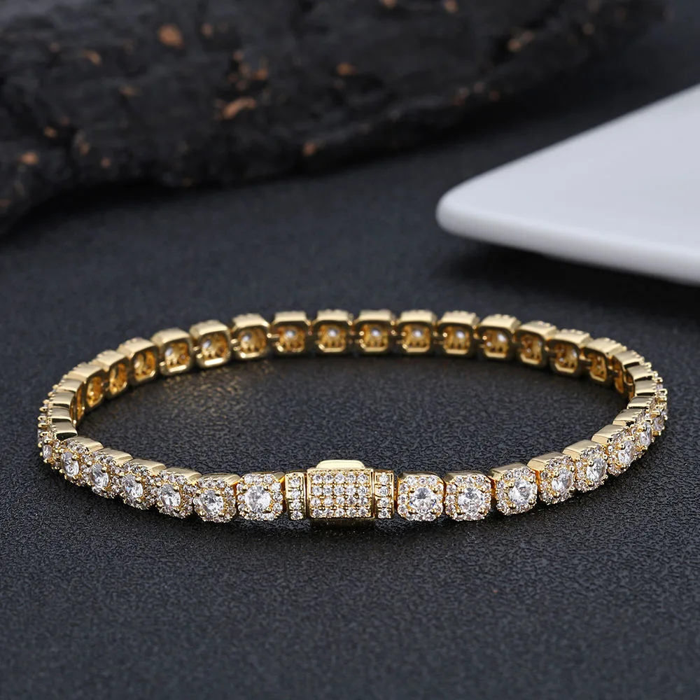 5mm Iced Tennis Chain Bracelet Bling Zircon Cluster Diamond 18k Gold Plated Bracelet for Women Men Hip Hop Jewelry