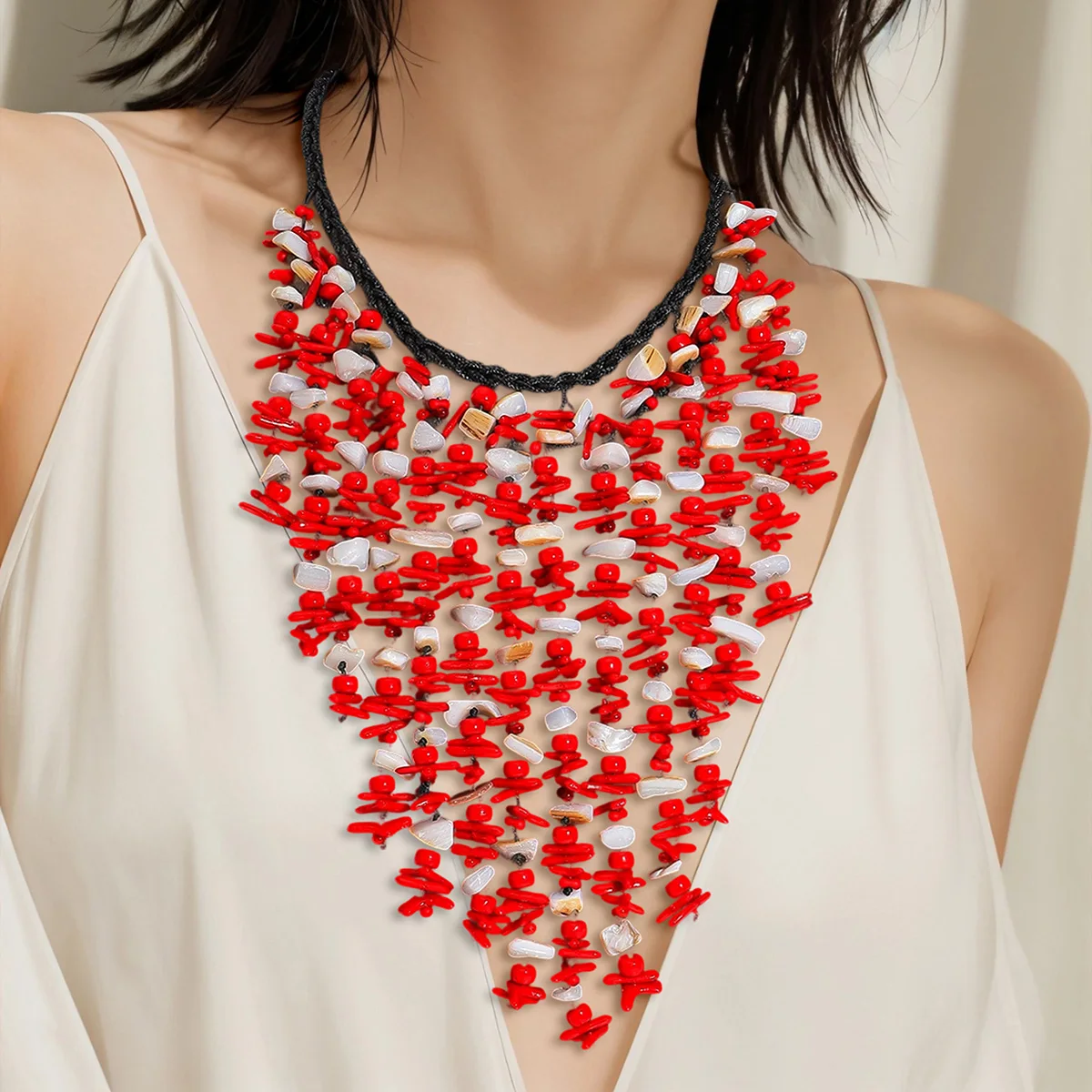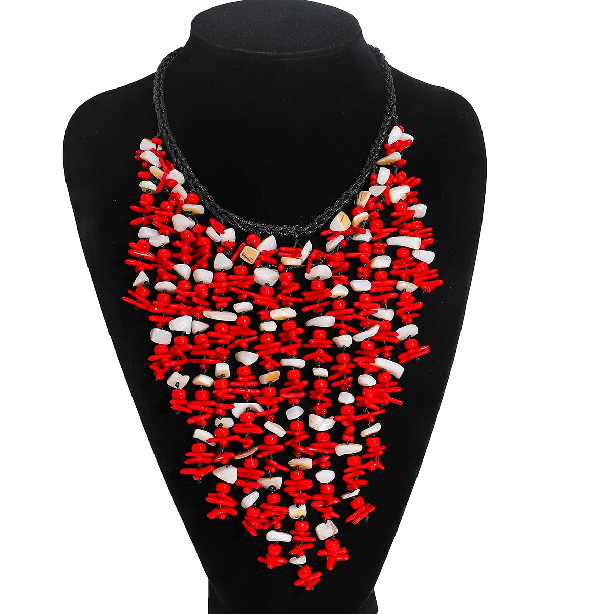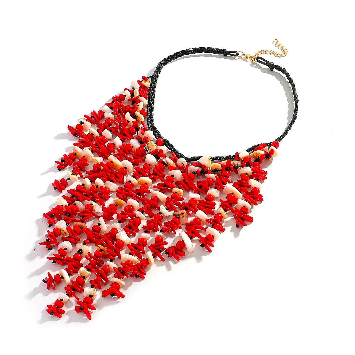 • 2025 Fashion Seashell Cascade Tassel Necklace For Women Boho Handmade Red Beaded Charm Jewelry Elegant Summer Beach Match