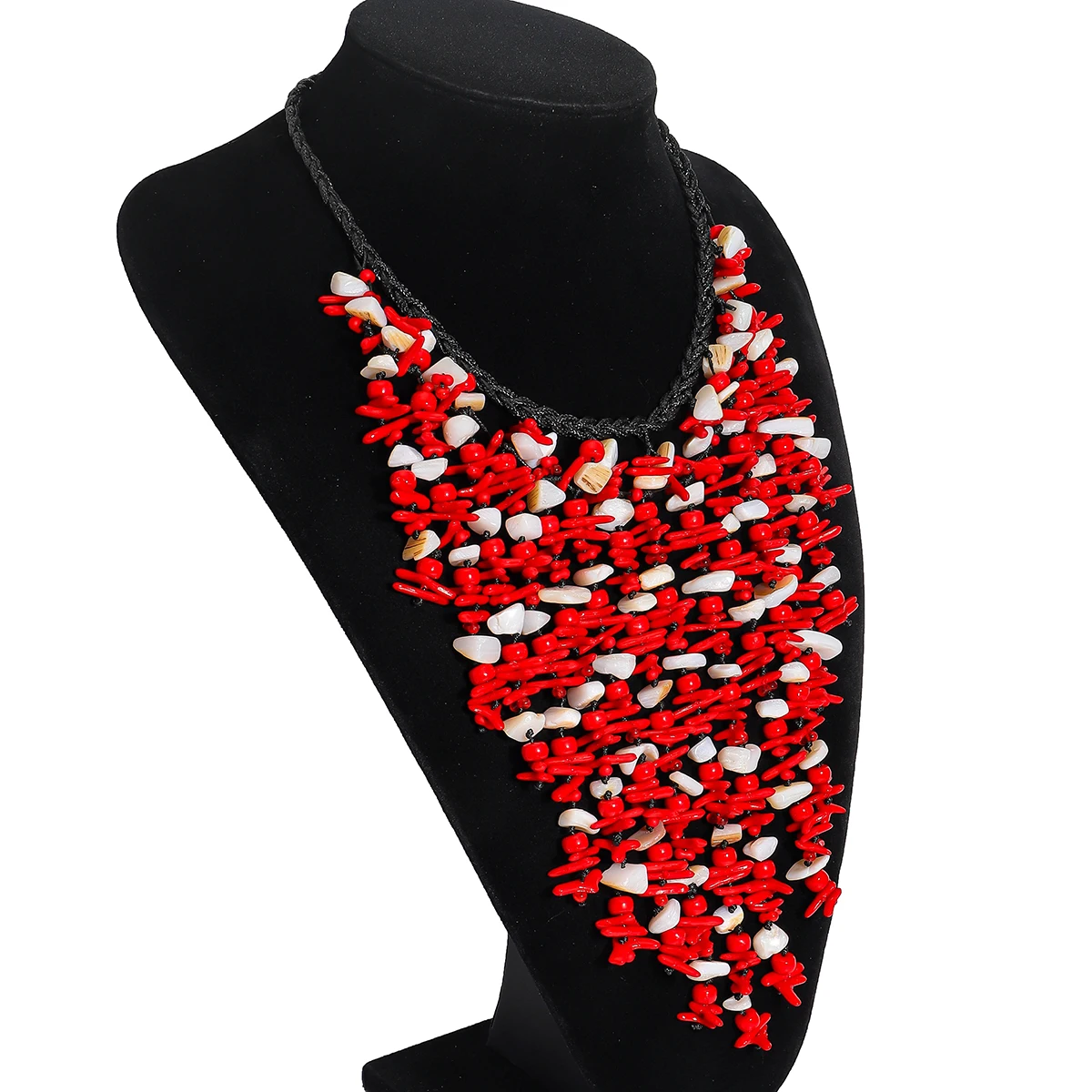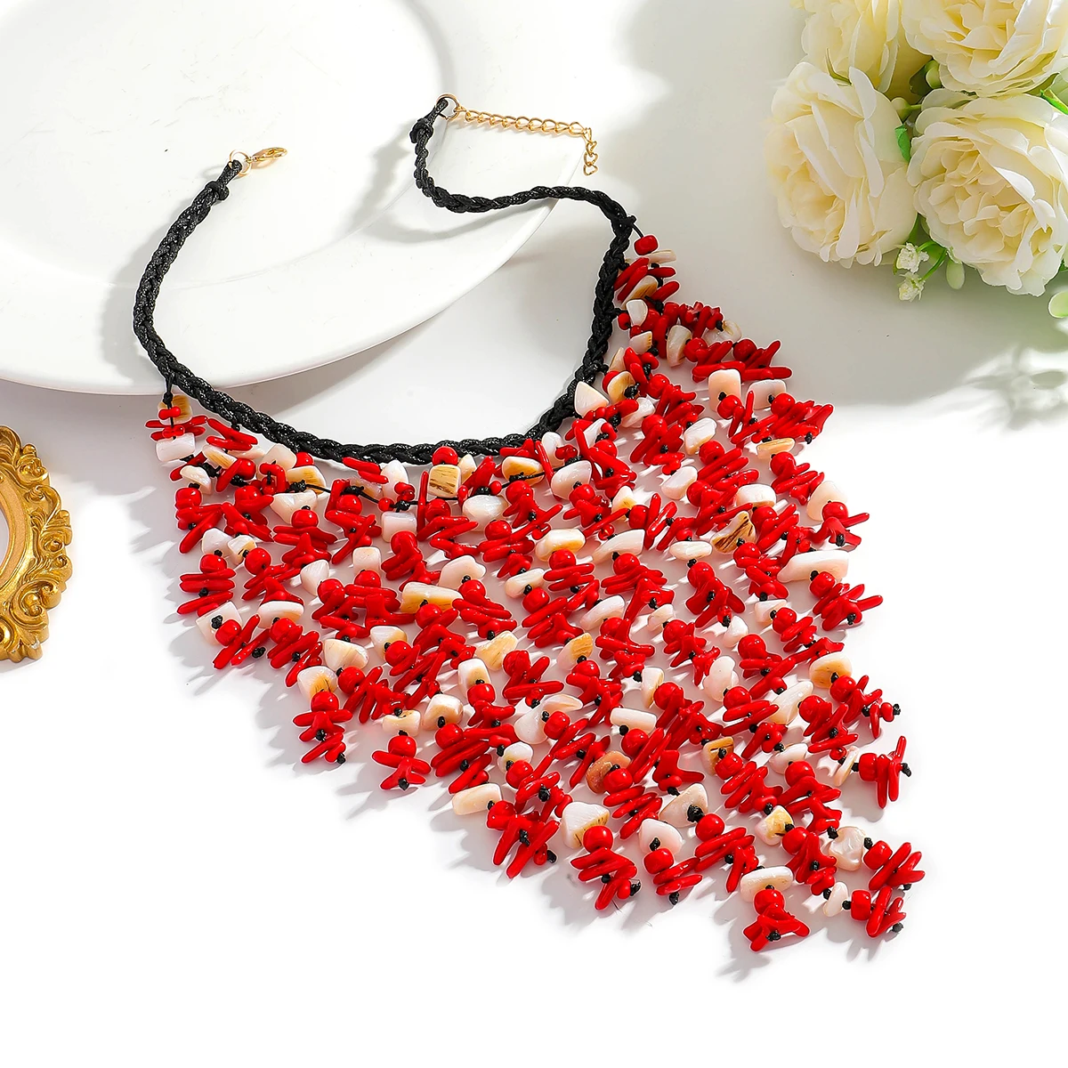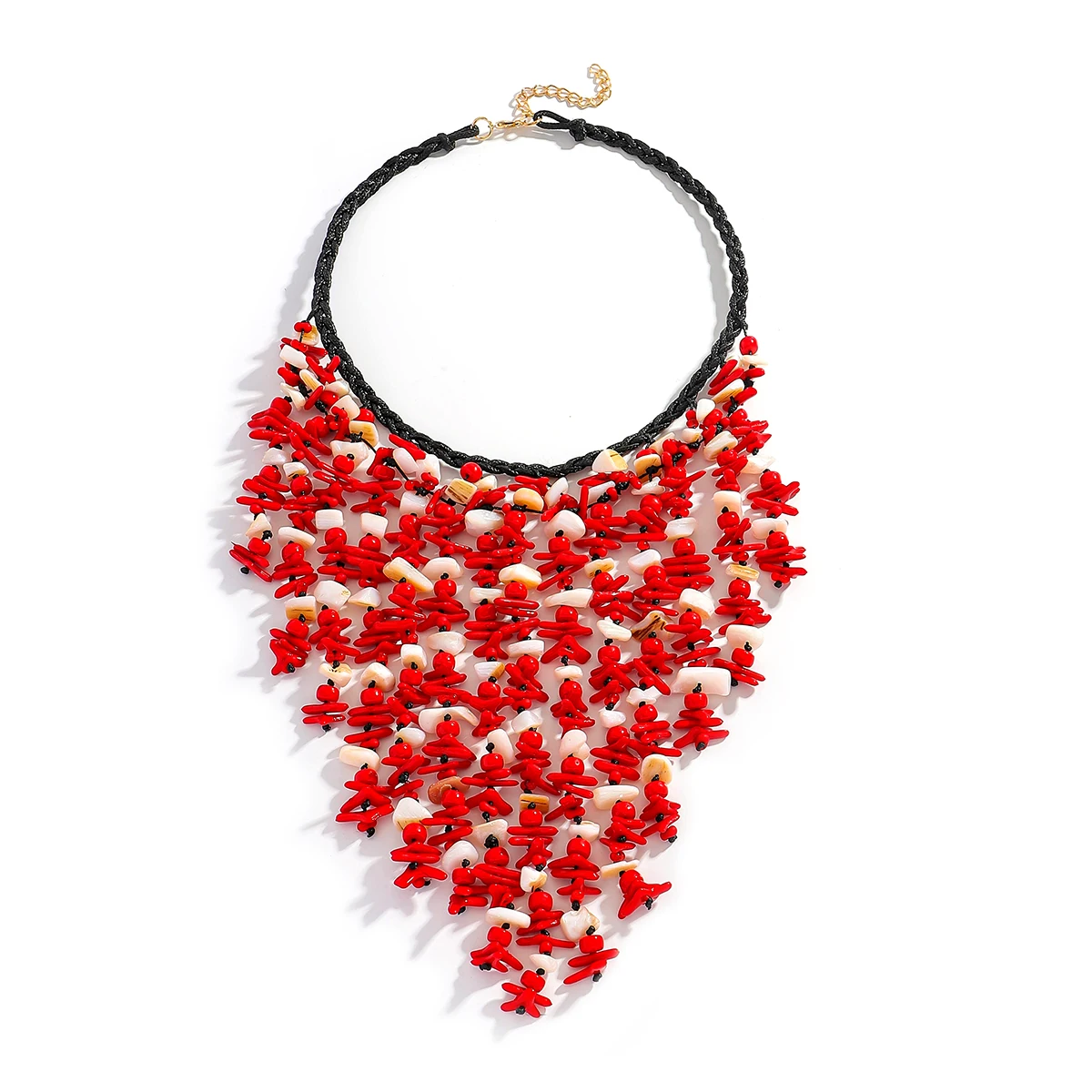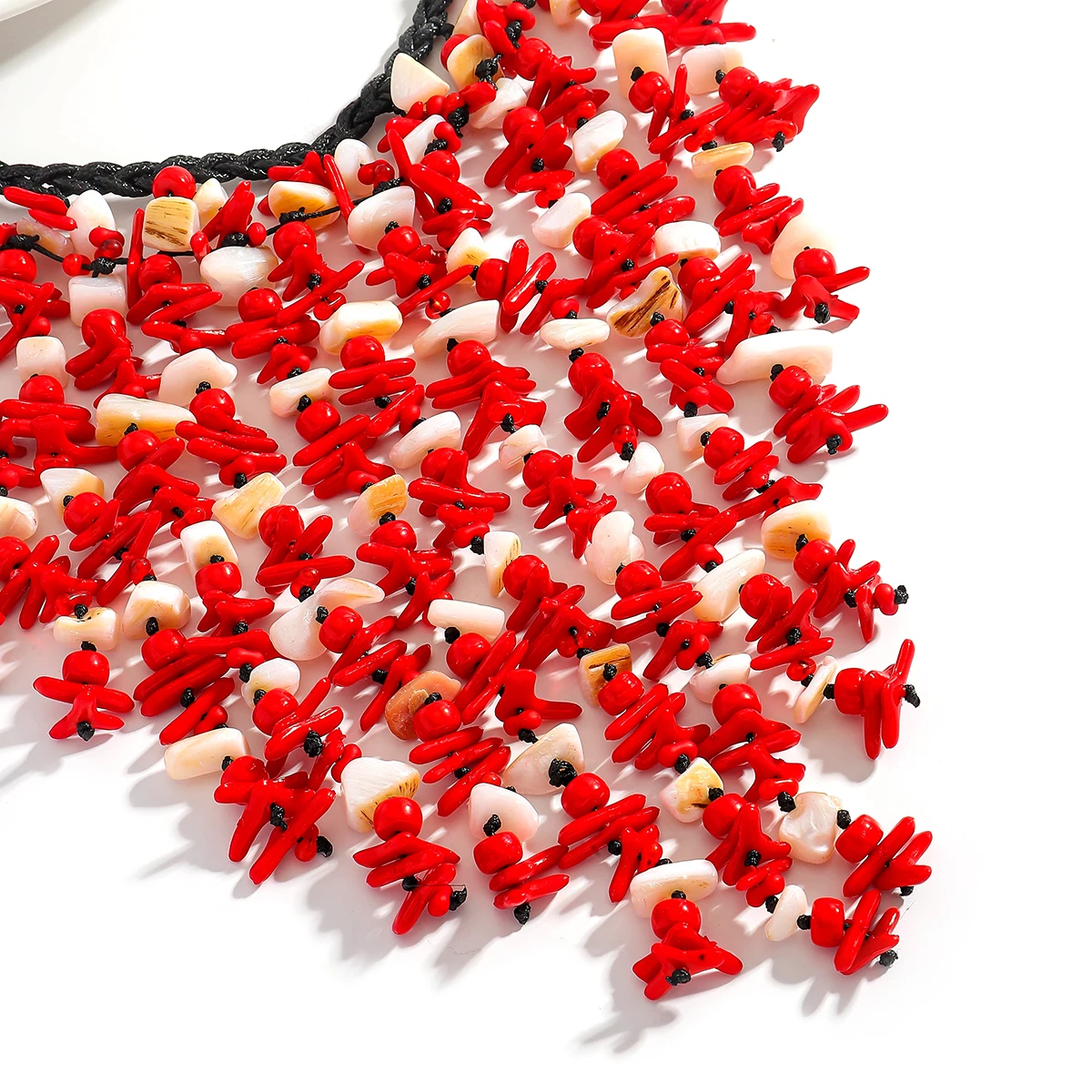 • 2025 Fashion Seashell Cascade Tassel Necklace For Women Boho Handmade Red Beaded Charm Jewelry Elegant Summer Beach Match