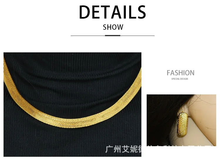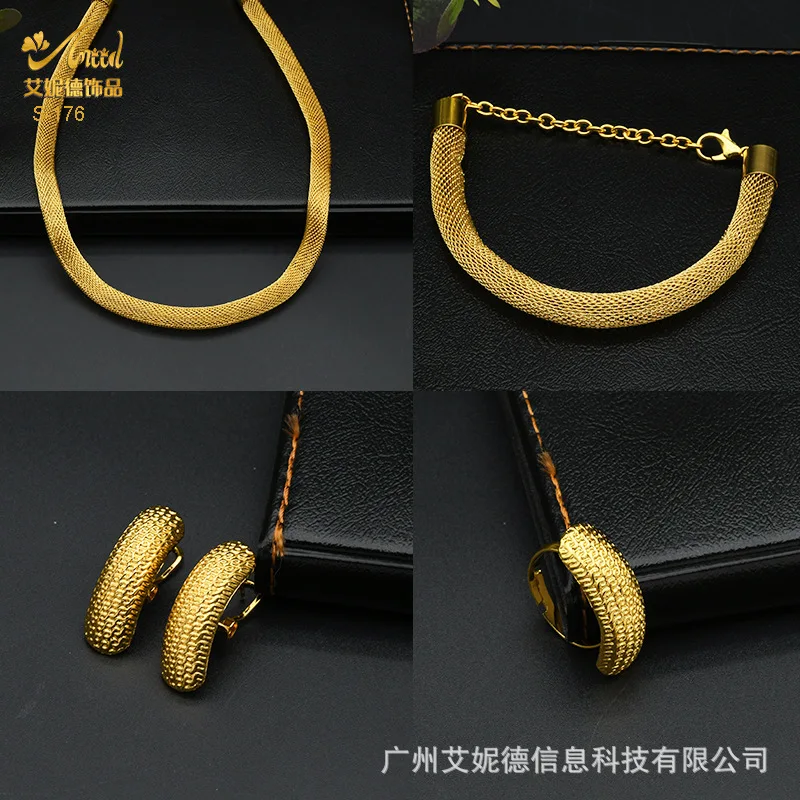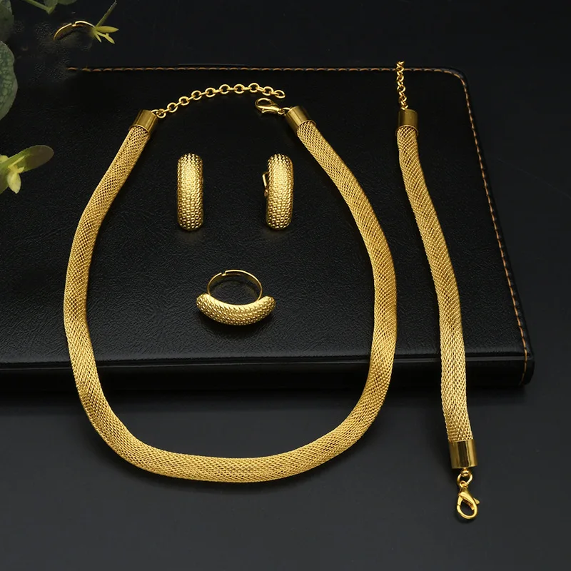 Simple Fashion Necklace Bracelet Earrings Ring 4-Piece Set Women 24K Gold AU999 - great for single or stack wear