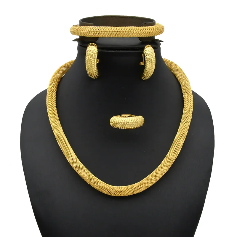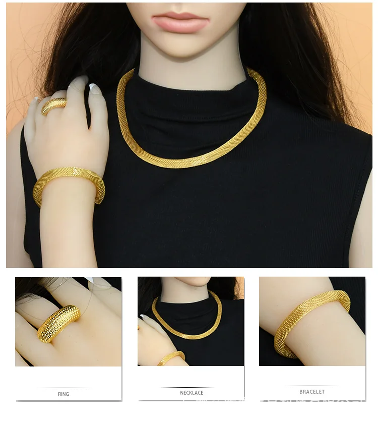 • Simple Fashion Necklace Bracelet Earrings Ring 4-Piece Set Women 24K Gold AU999 - great for single or stack wear