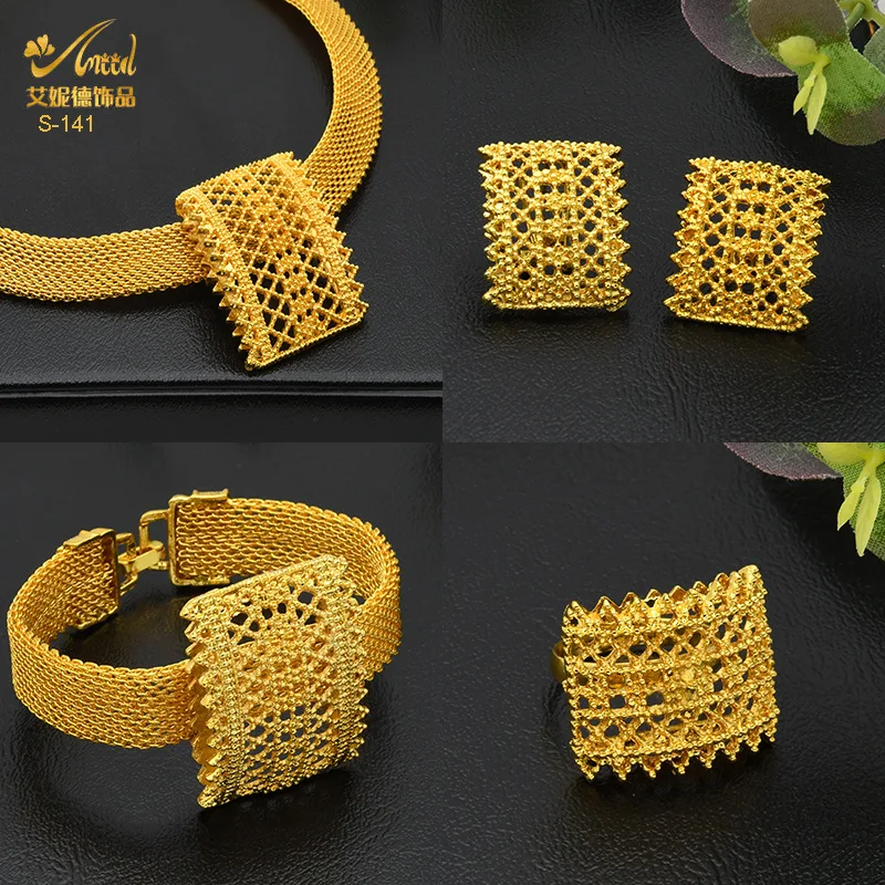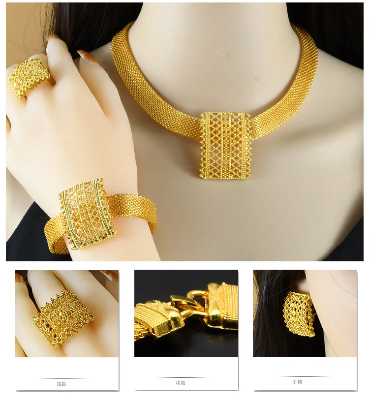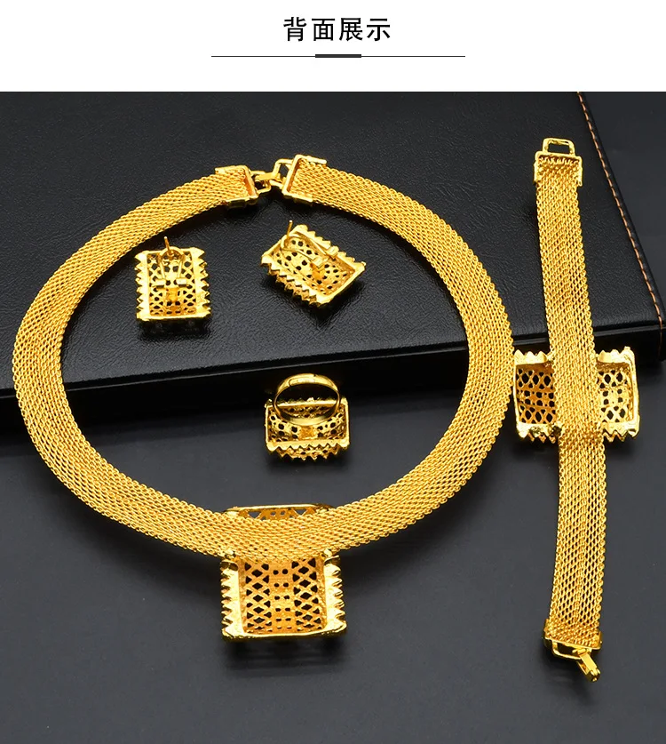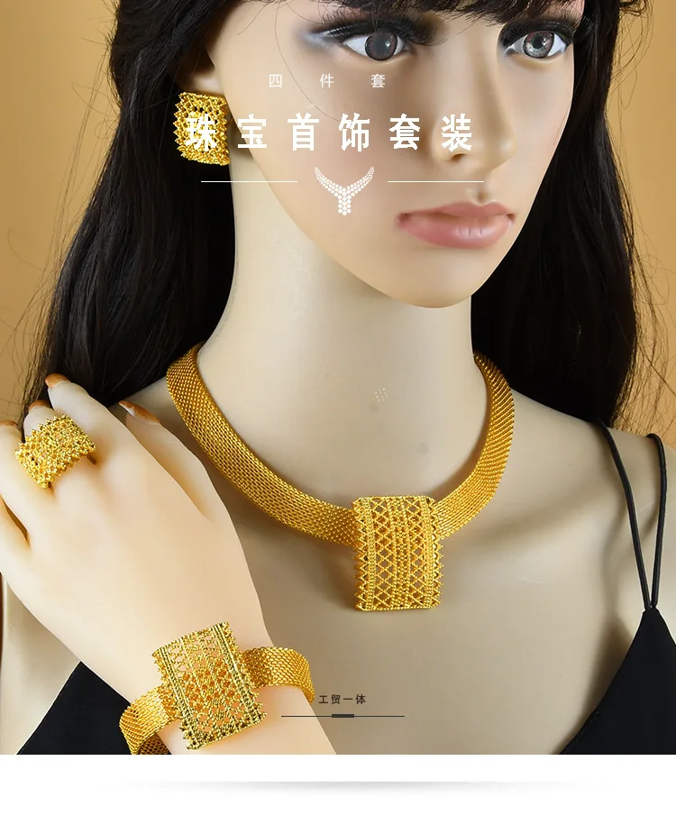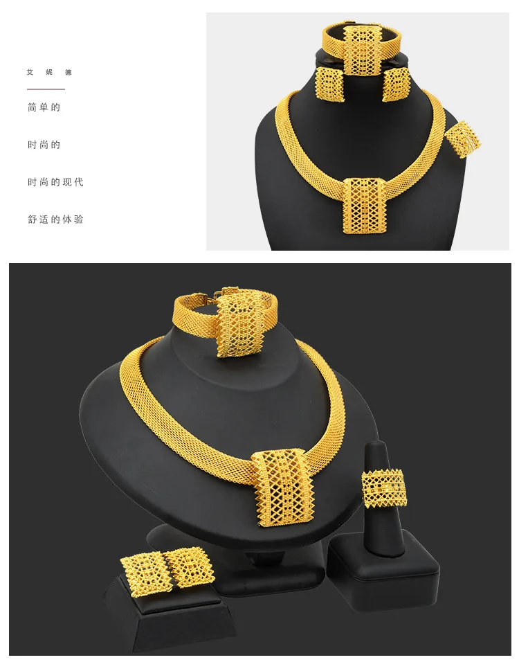 • 3D Luxury 4-Piece Set Women 24K Gold AU999-Necklace/Bracelet/Earrings/Ring, minimalist lines, 3D cut, perfect for work