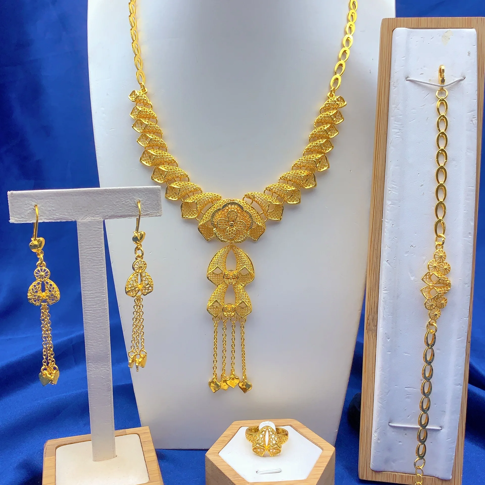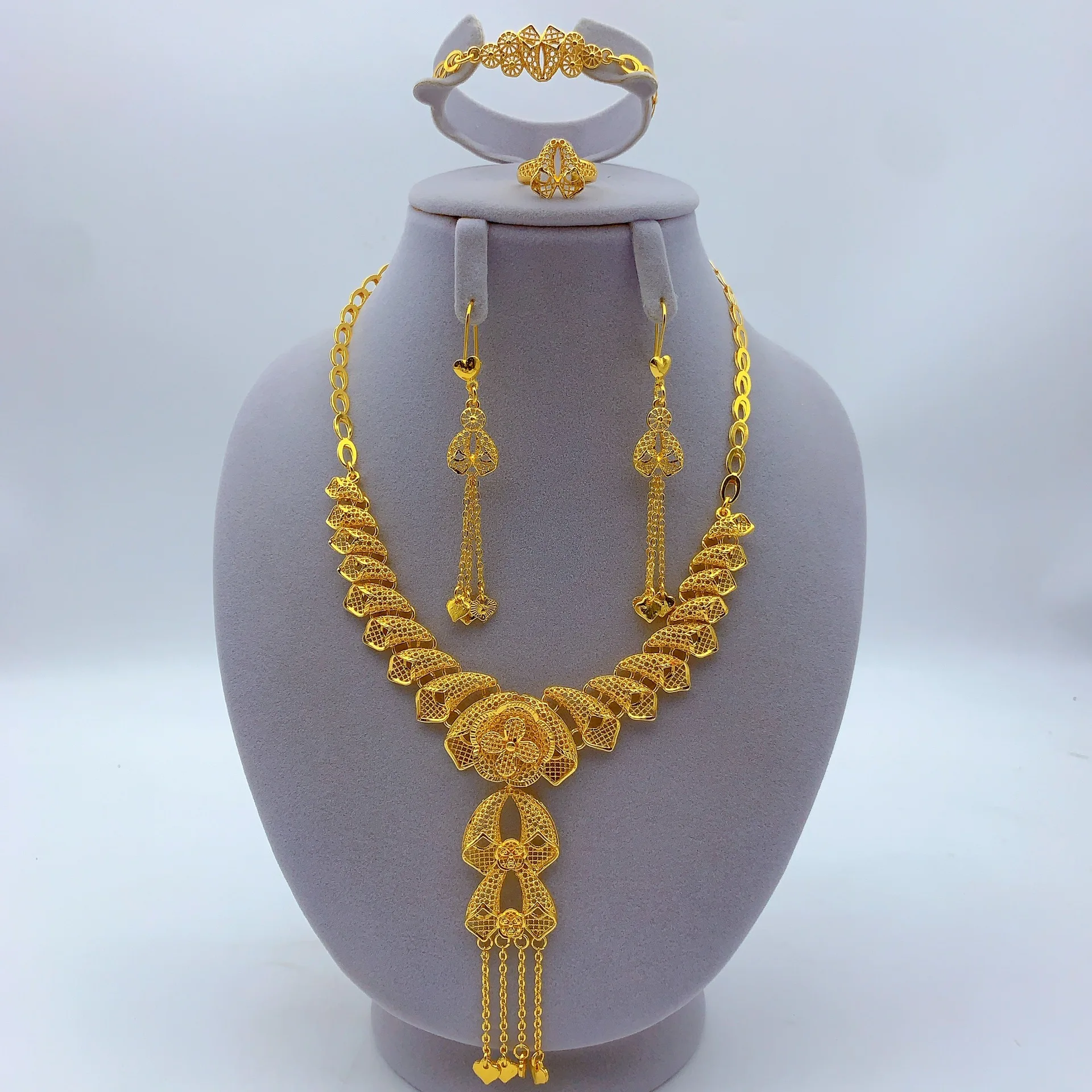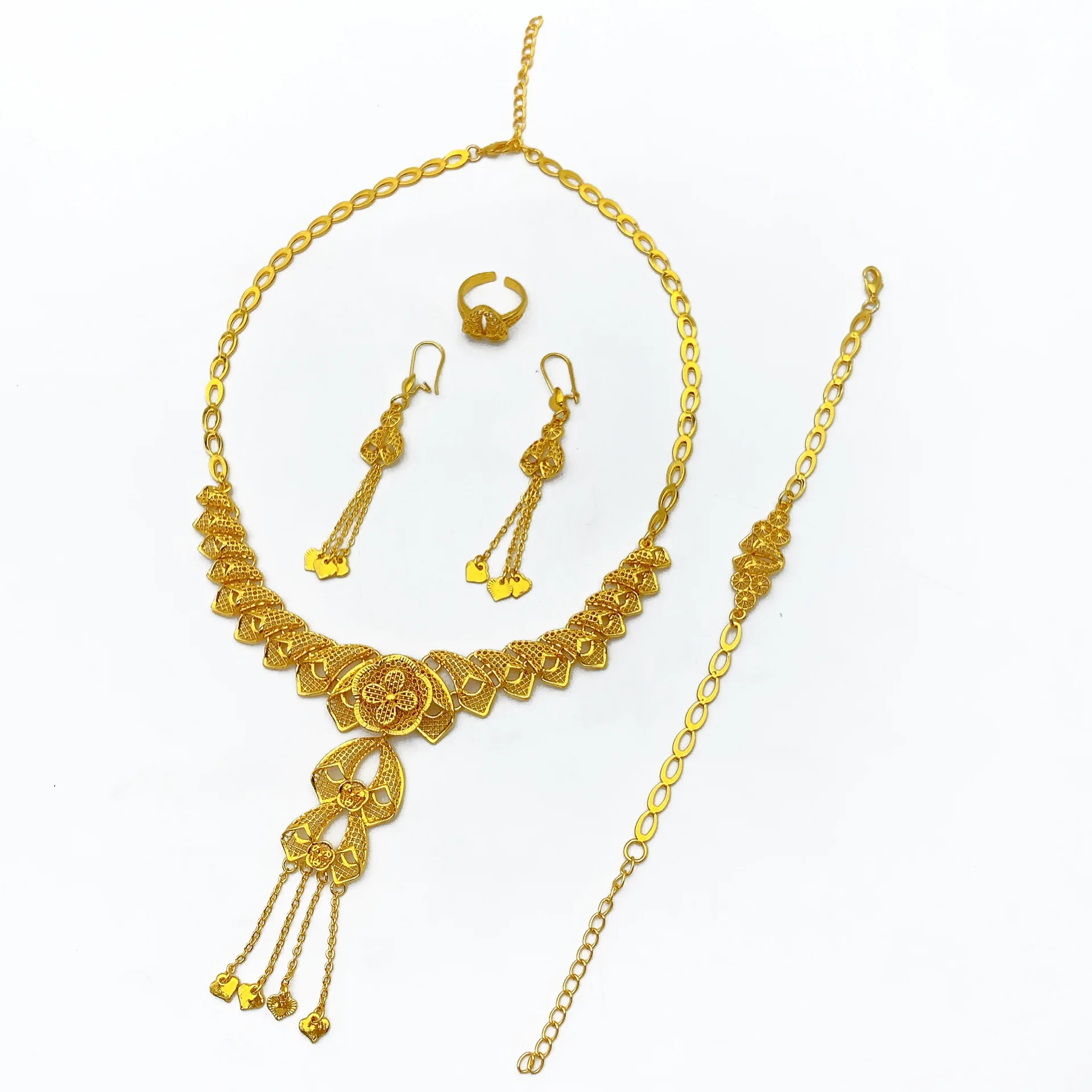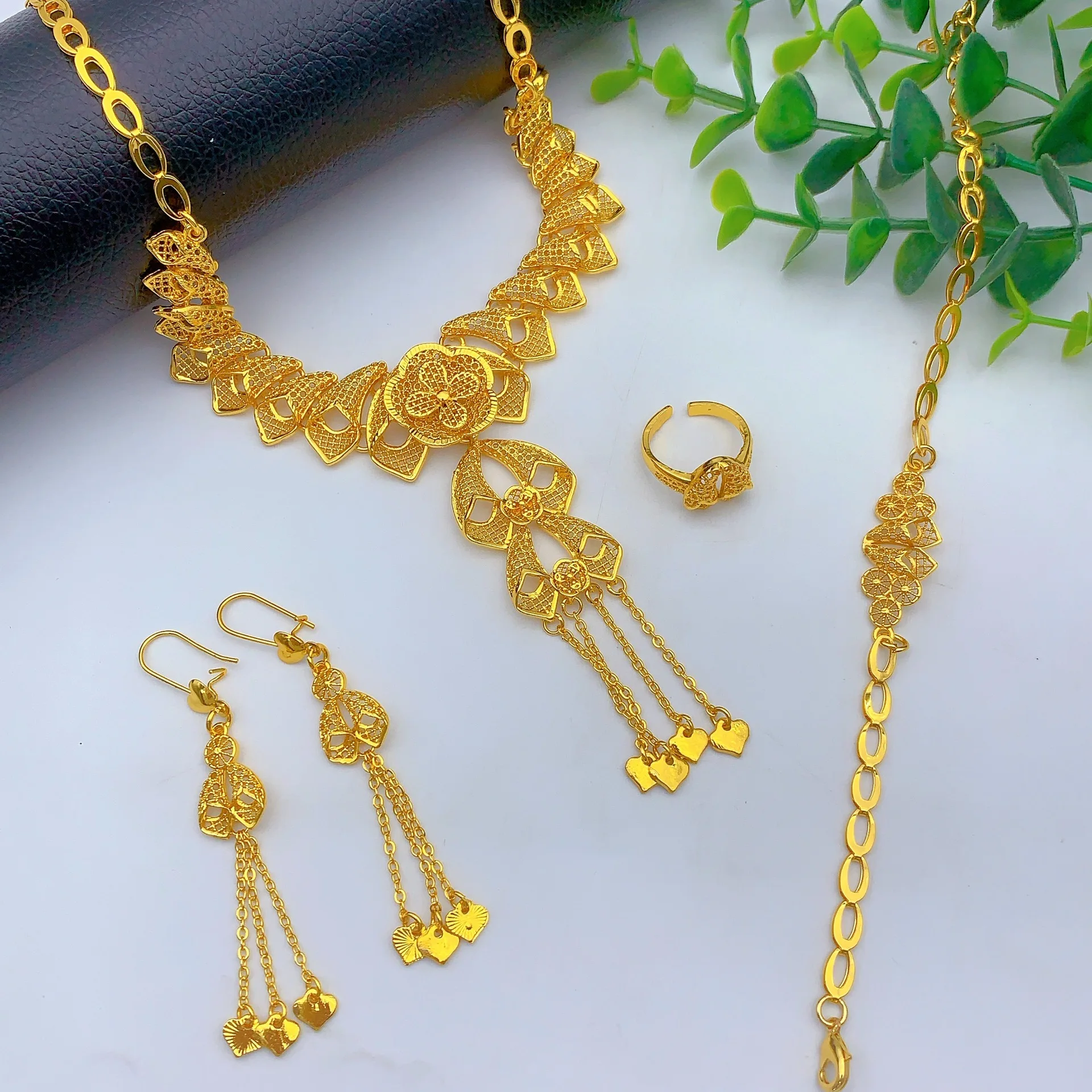 • Light Luxury Stylish Jewelry Set Necklace Earrings Bracelet Ring For Women 24K Gold AU999 elegant vibe