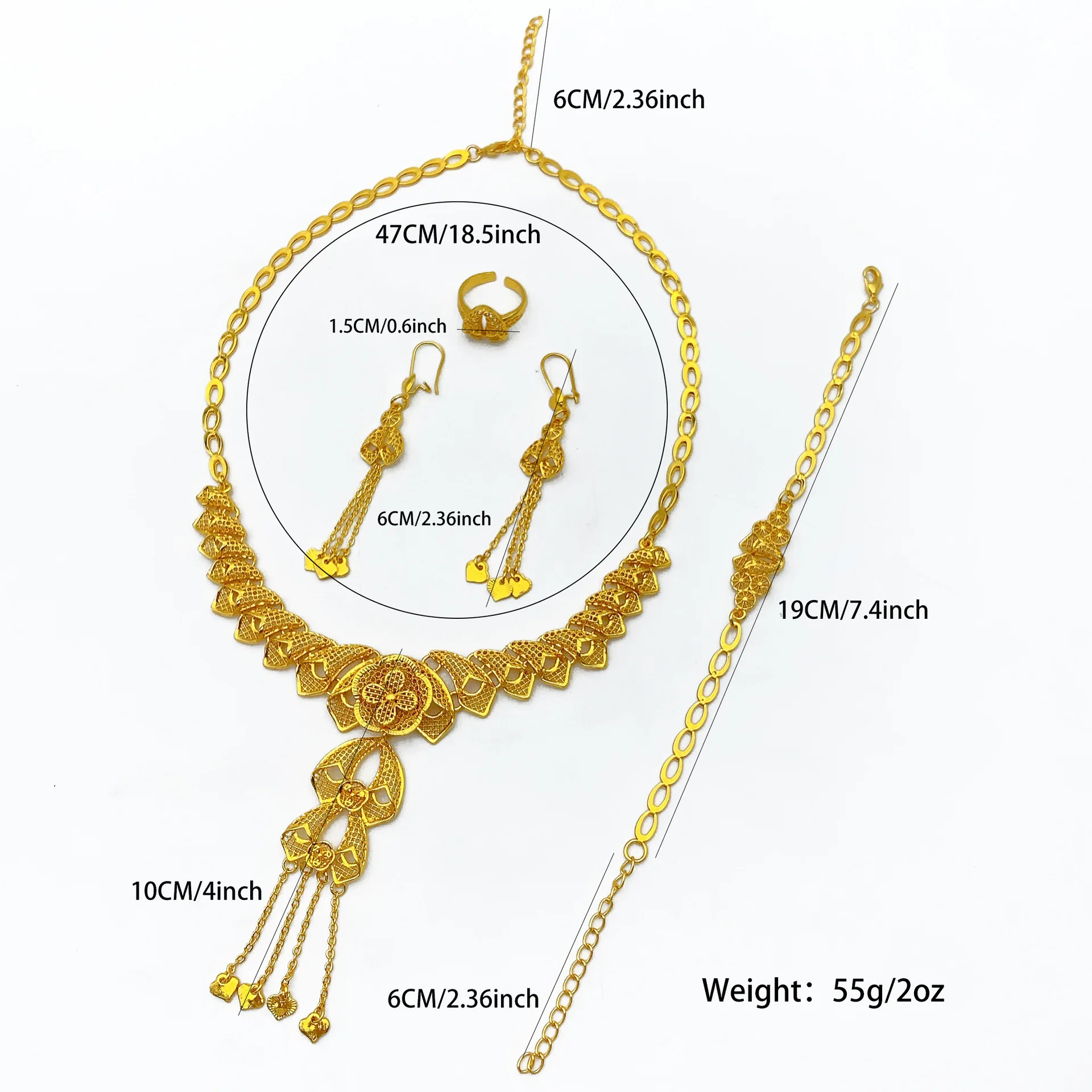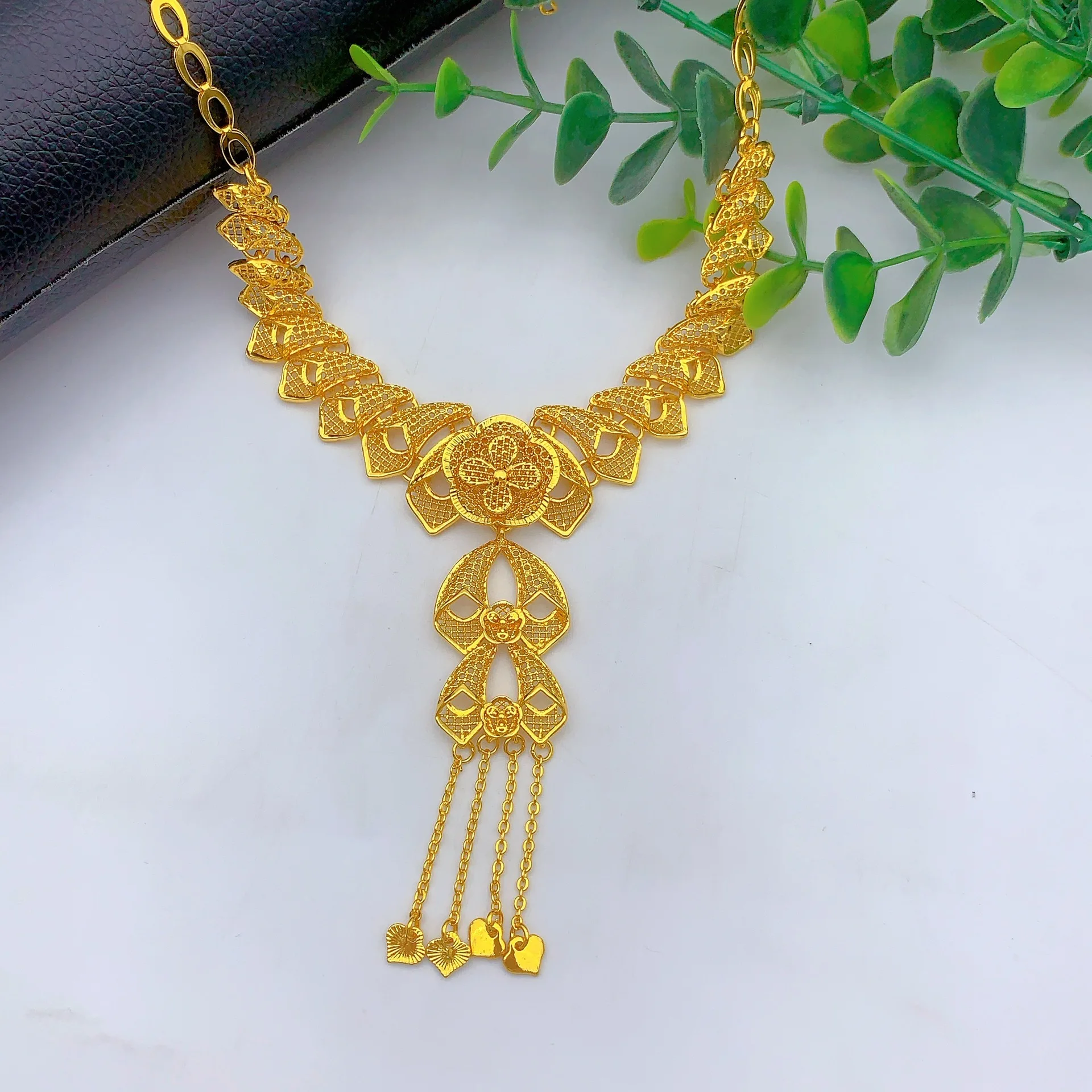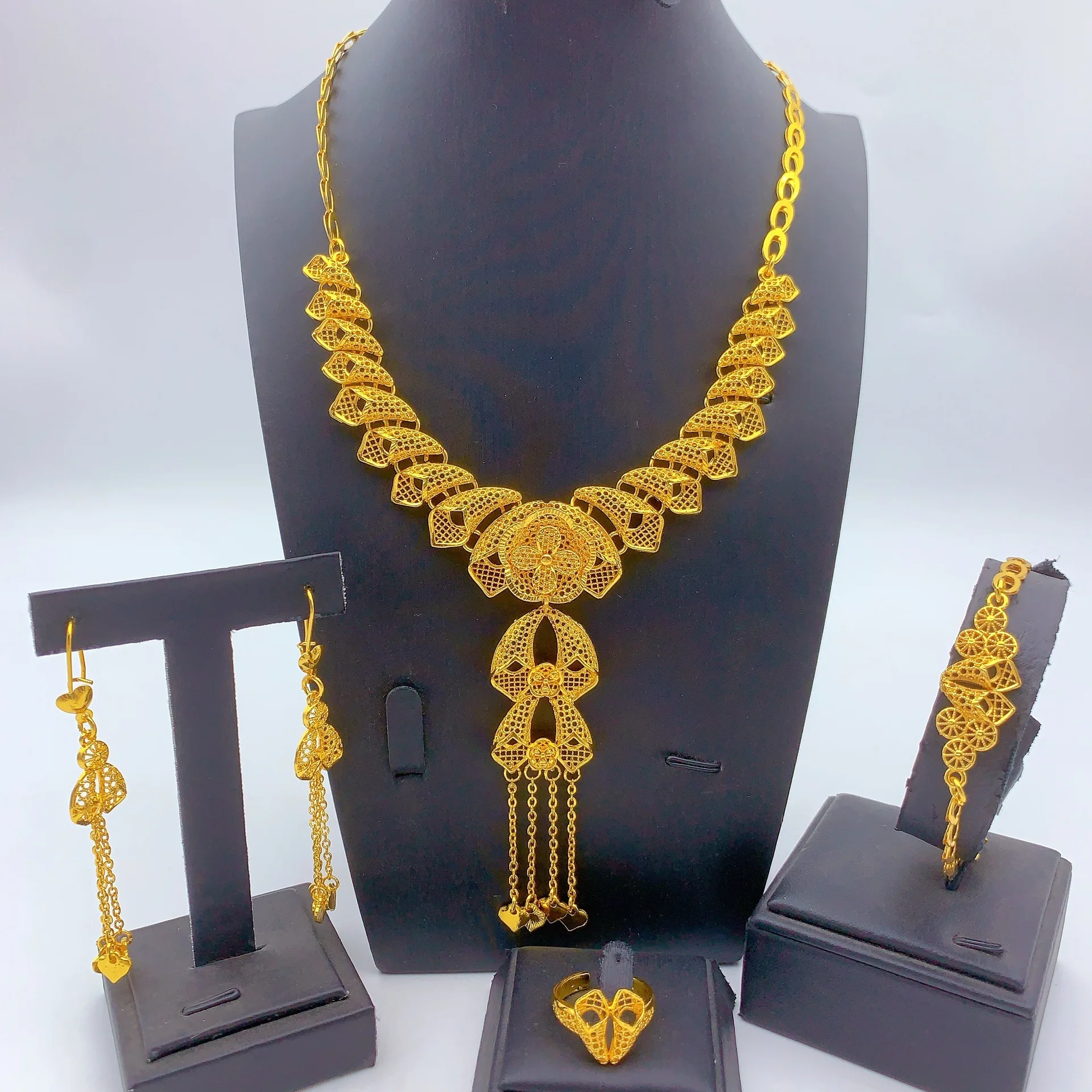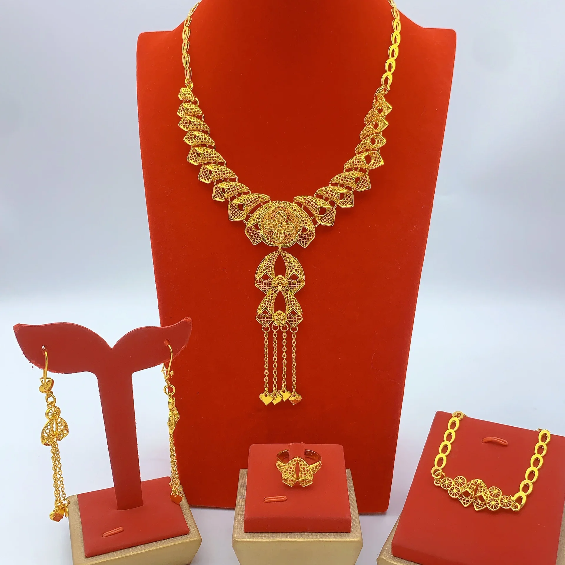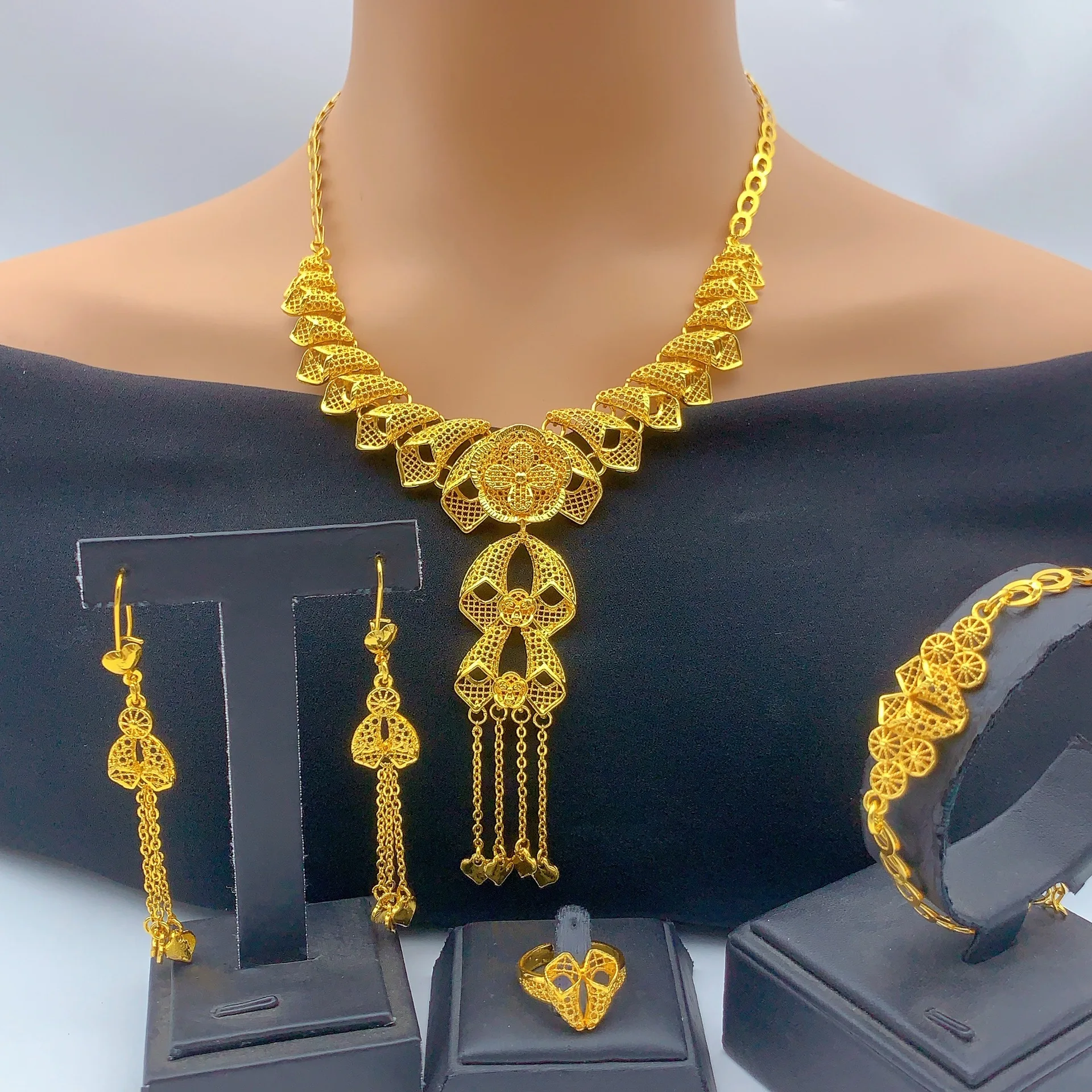 • Light Luxury Stylish Jewelry Set Necklace Earrings Bracelet Ring For Women 24K Gold AU999 elegant vibe