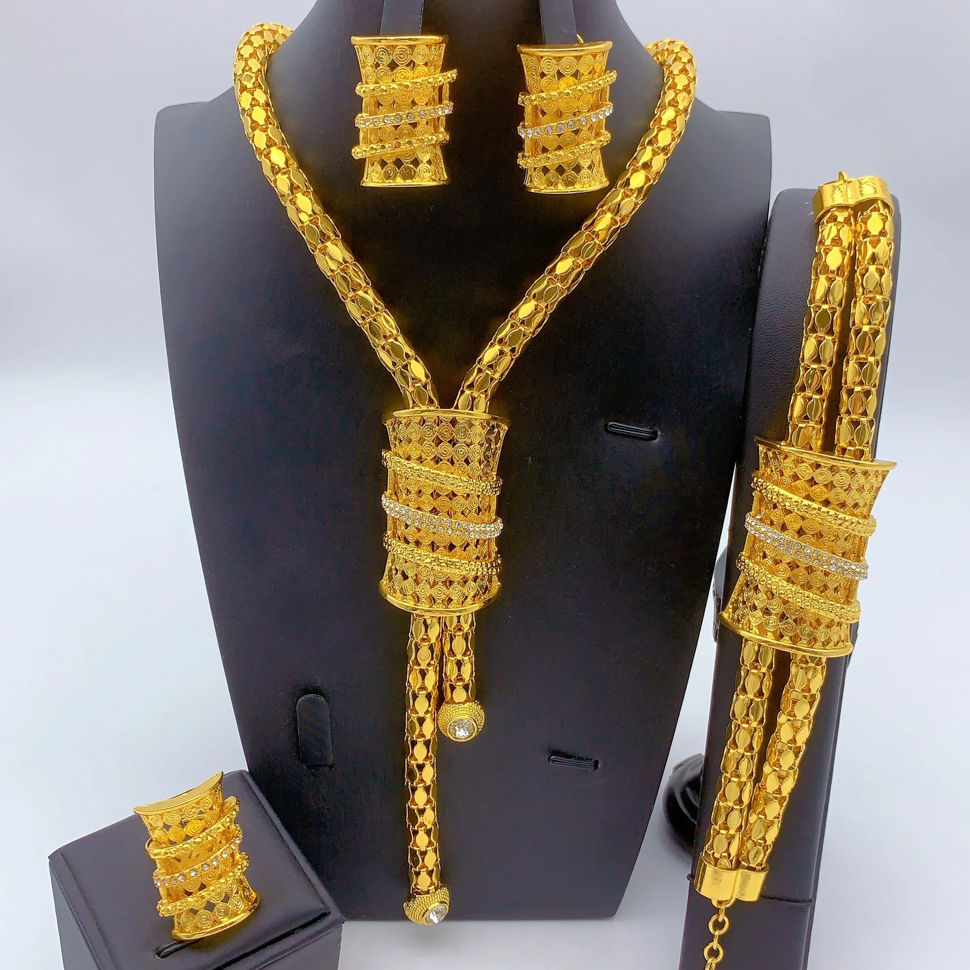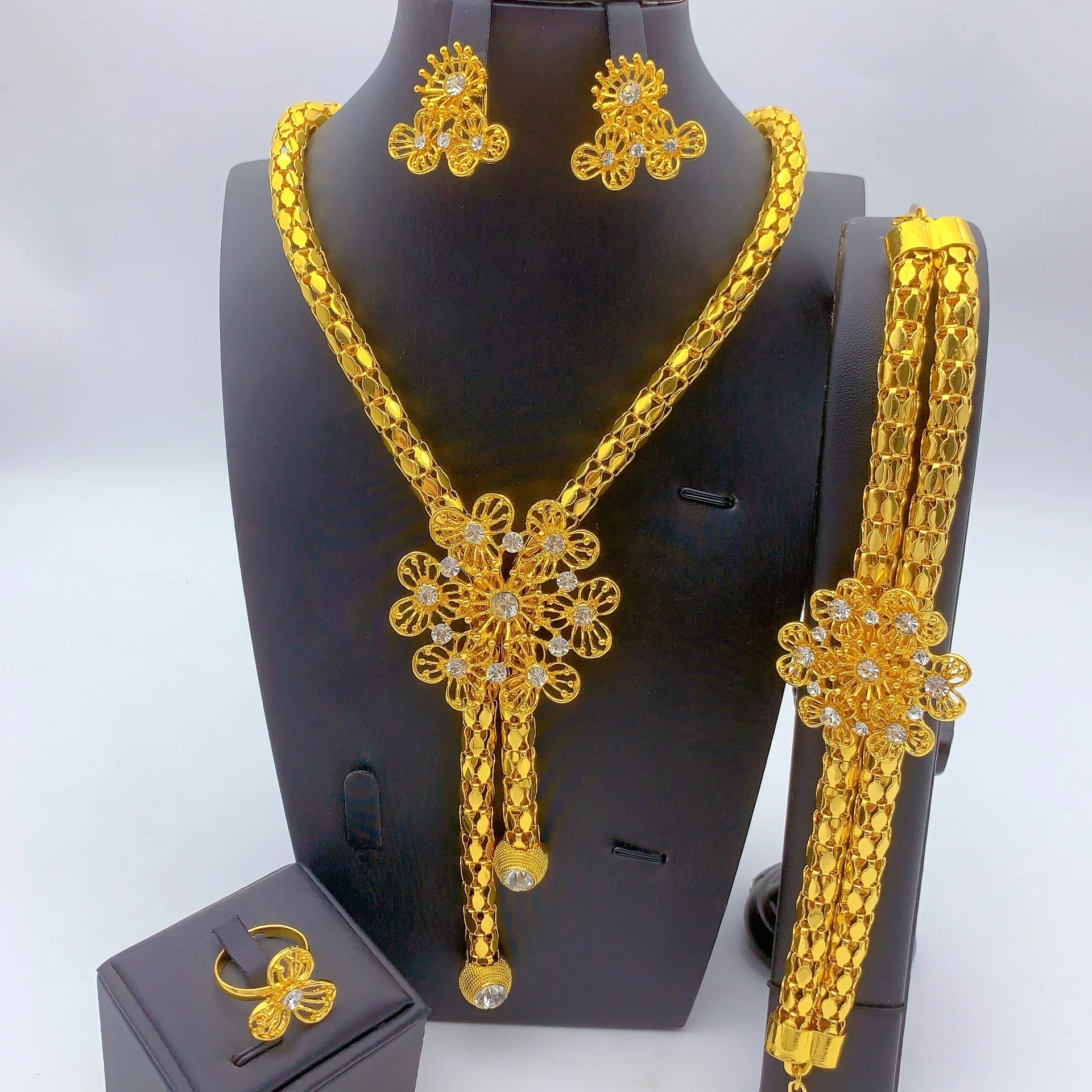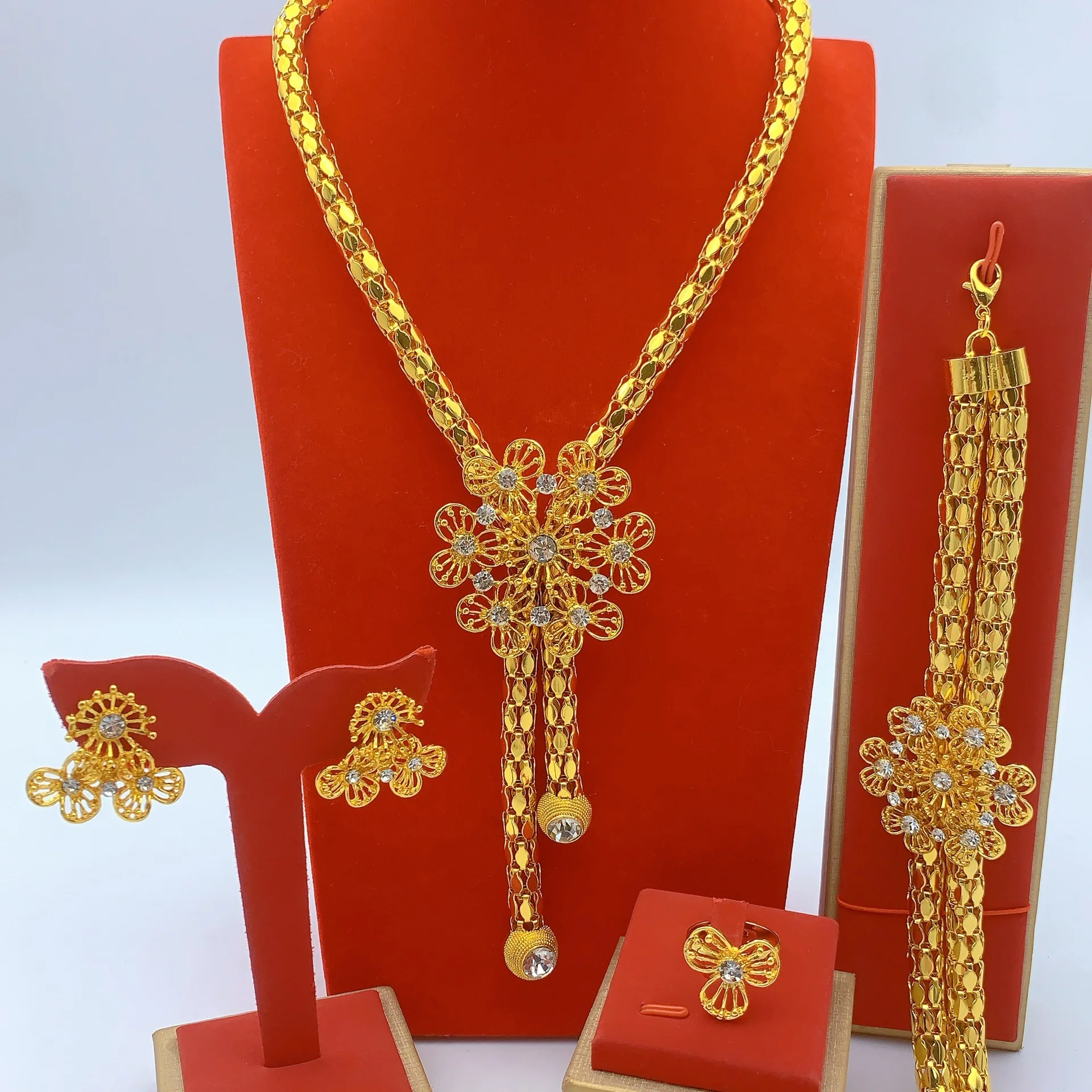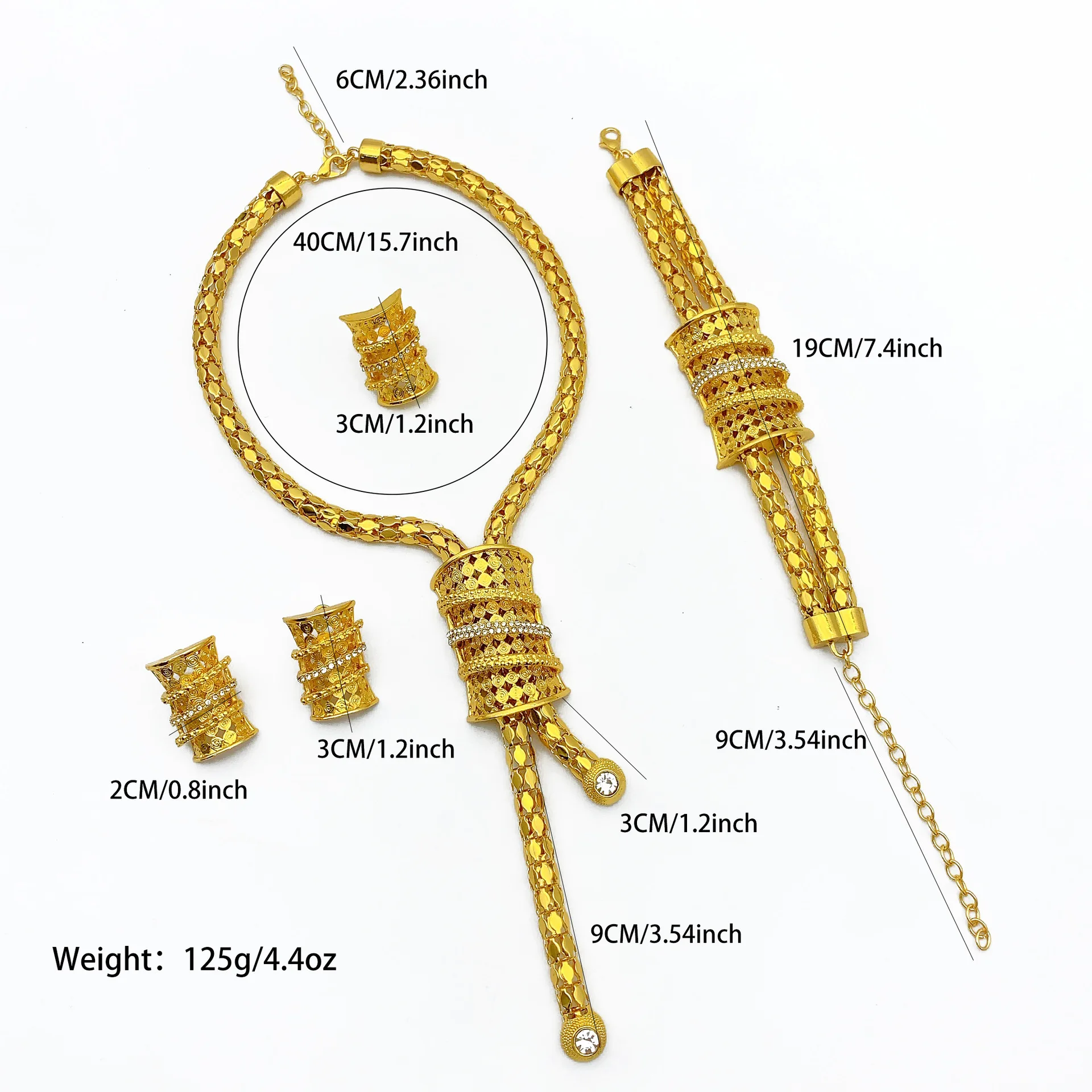 Bright Shiny Stylish Diamond Set Necklace Earrings Bracelet Ring For Women 24K Gold AU999 glamorous