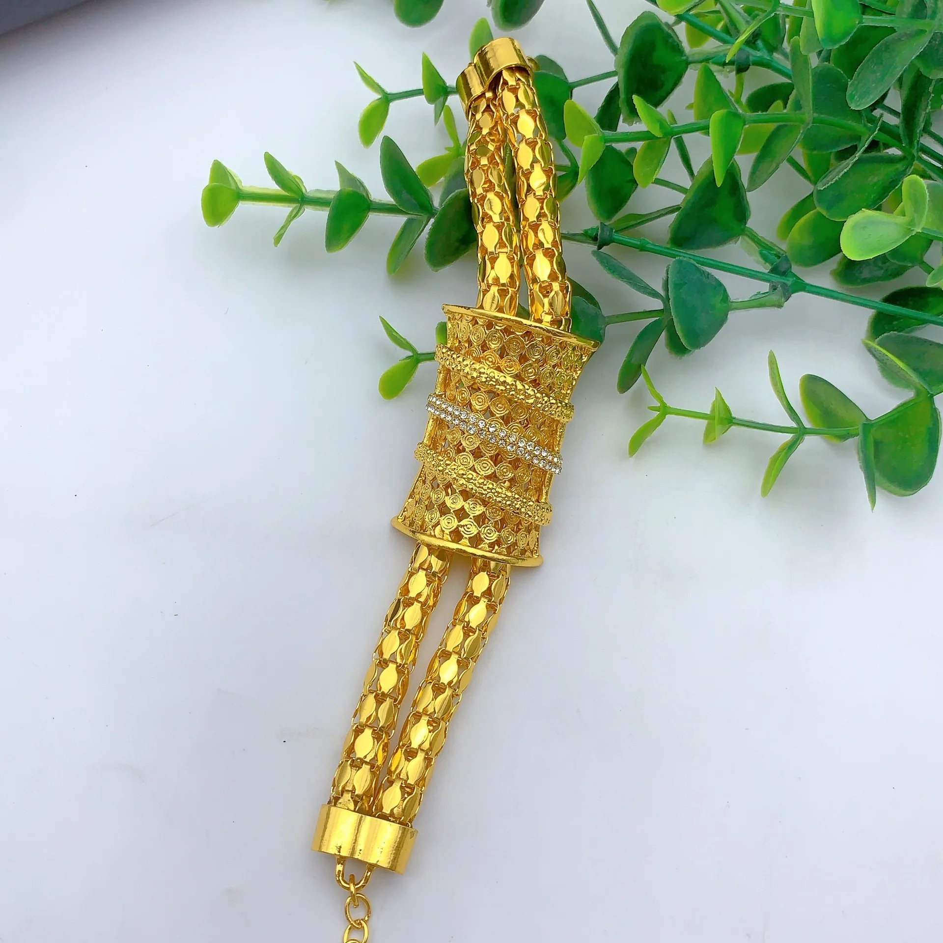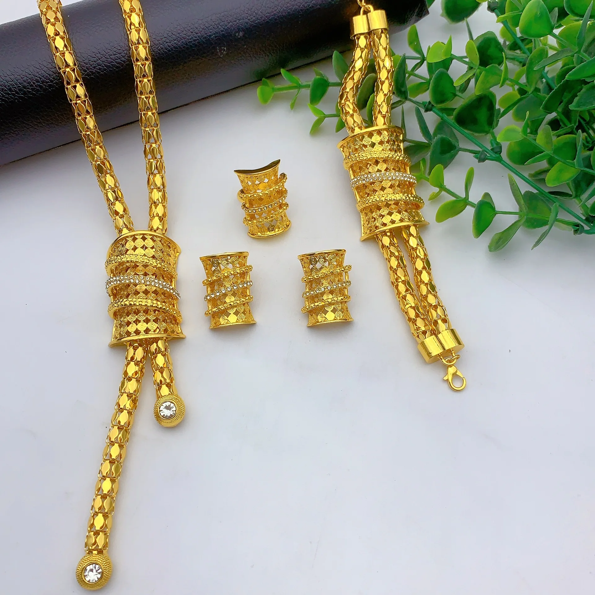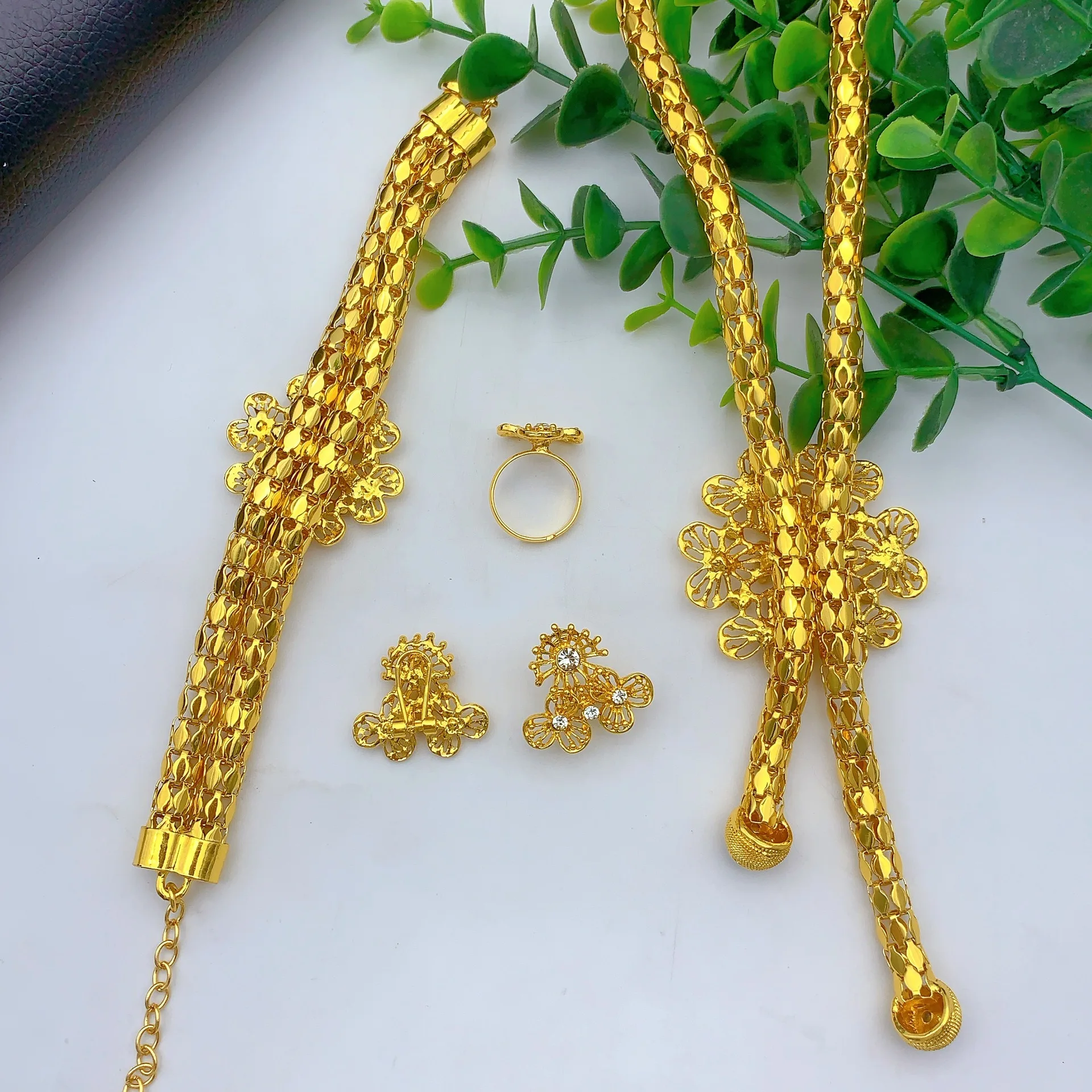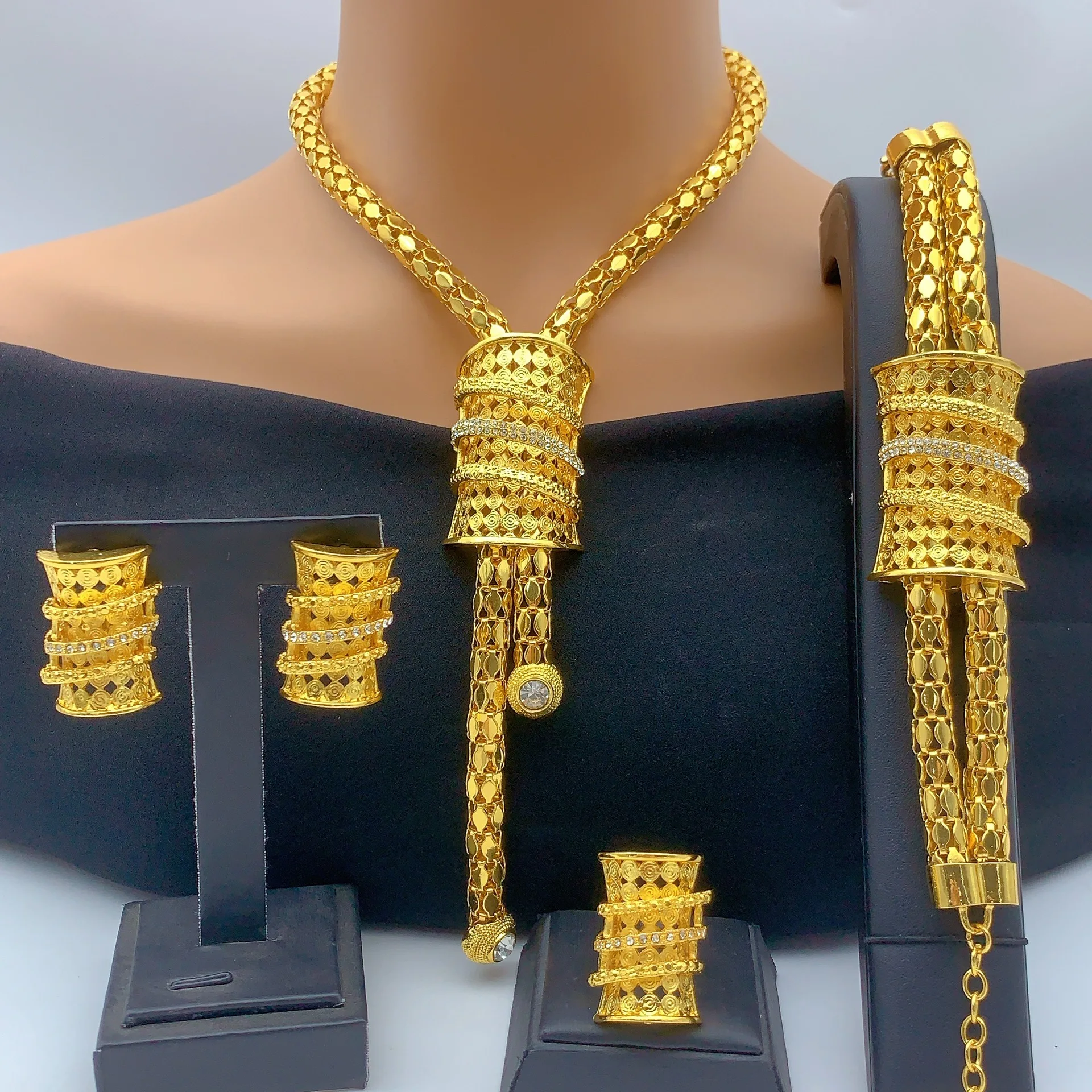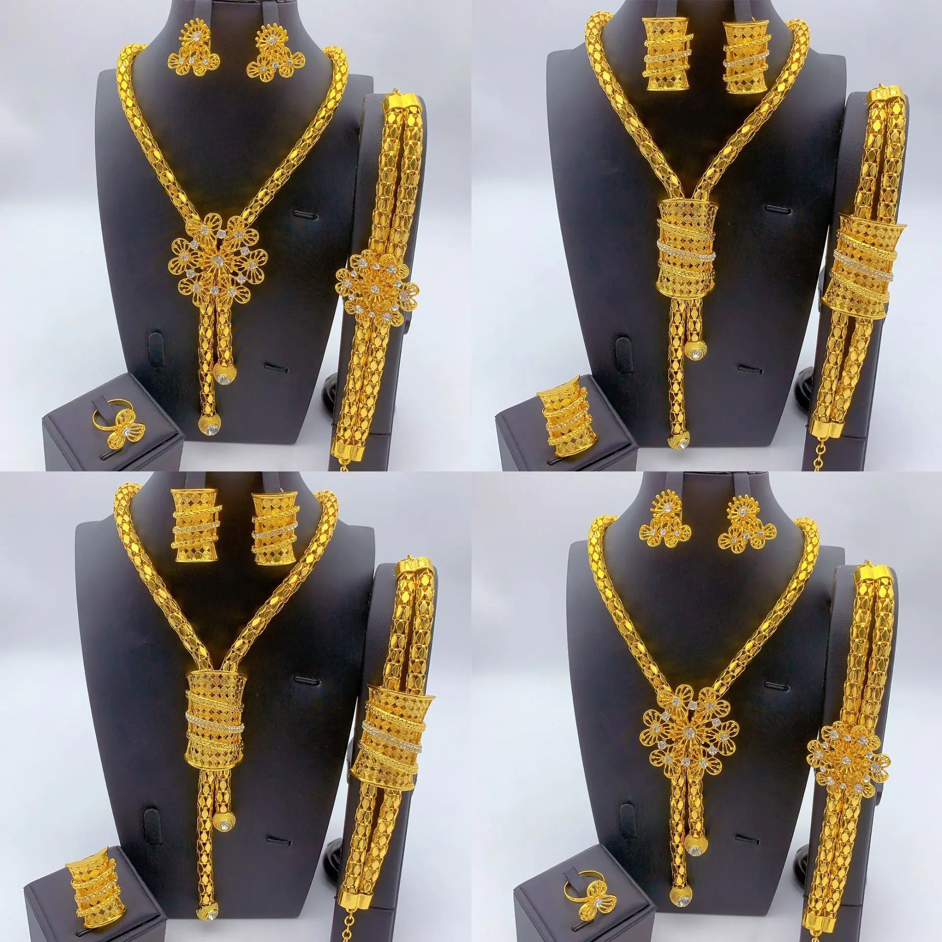 Bright Shiny Stylish Diamond Set Necklace Earrings Bracelet Ring For Women 24K Gold AU999 glamorous
