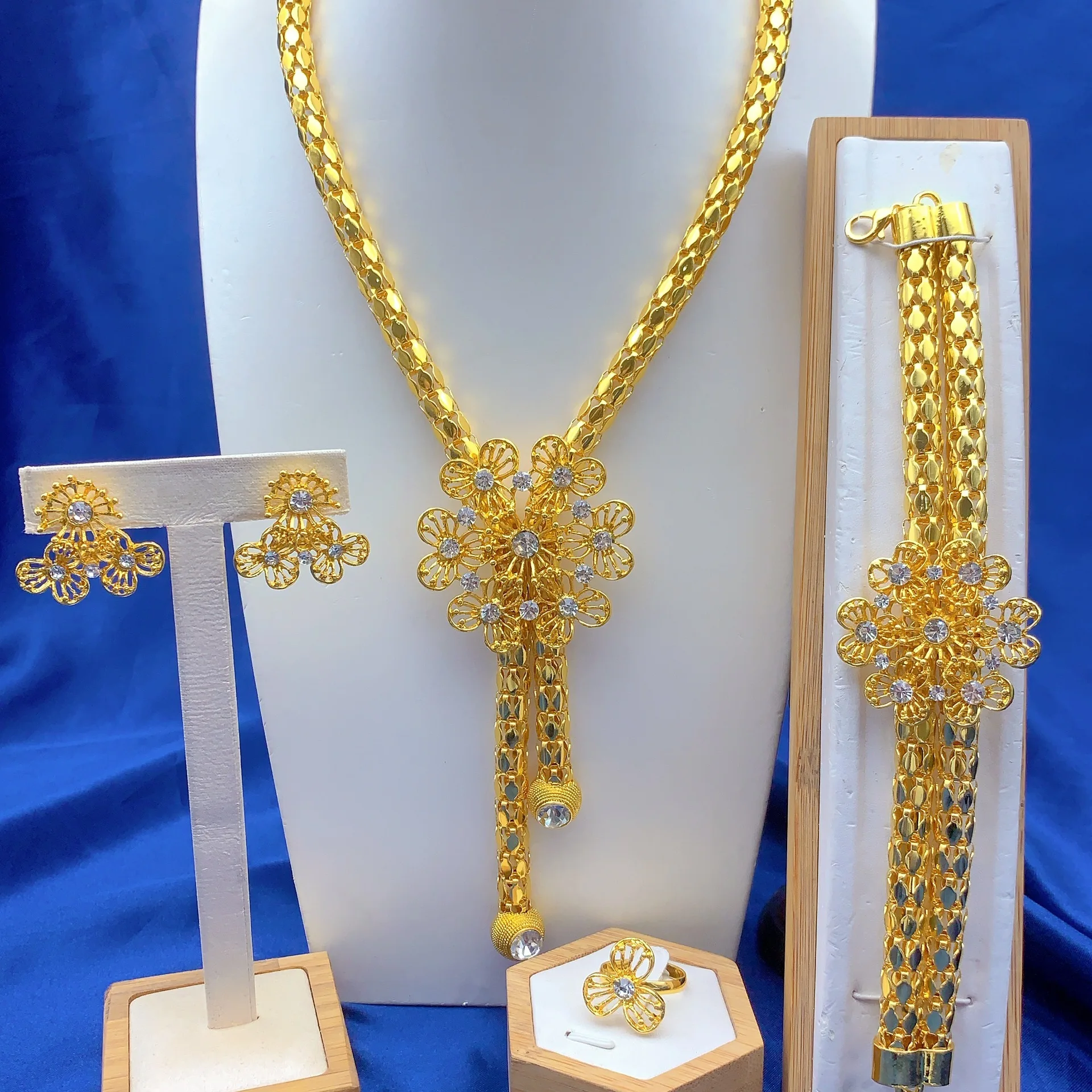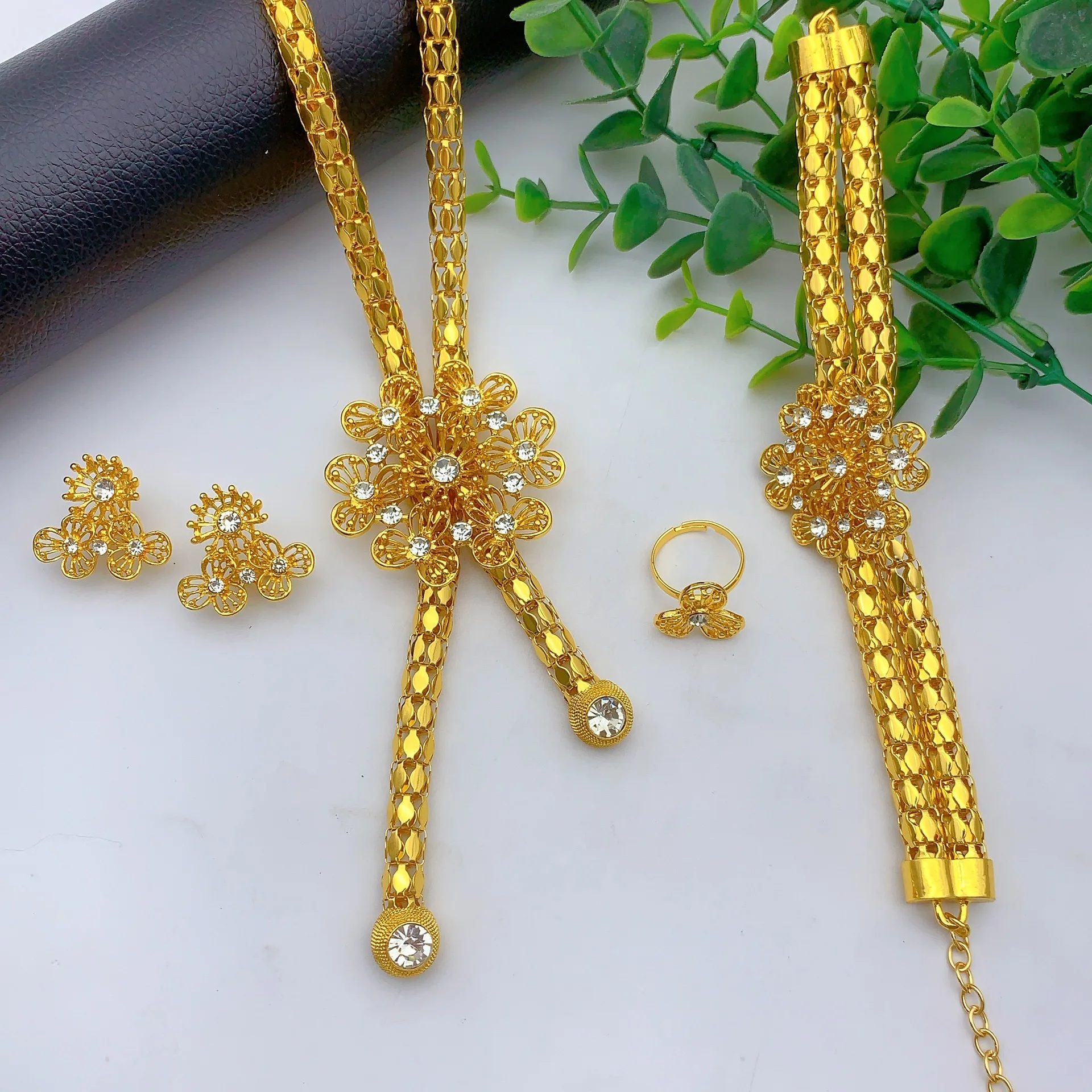 • Bright Shiny Stylish Diamond Set Necklace Earrings Bracelet Ring For Women 24K Gold AU999 glamorous