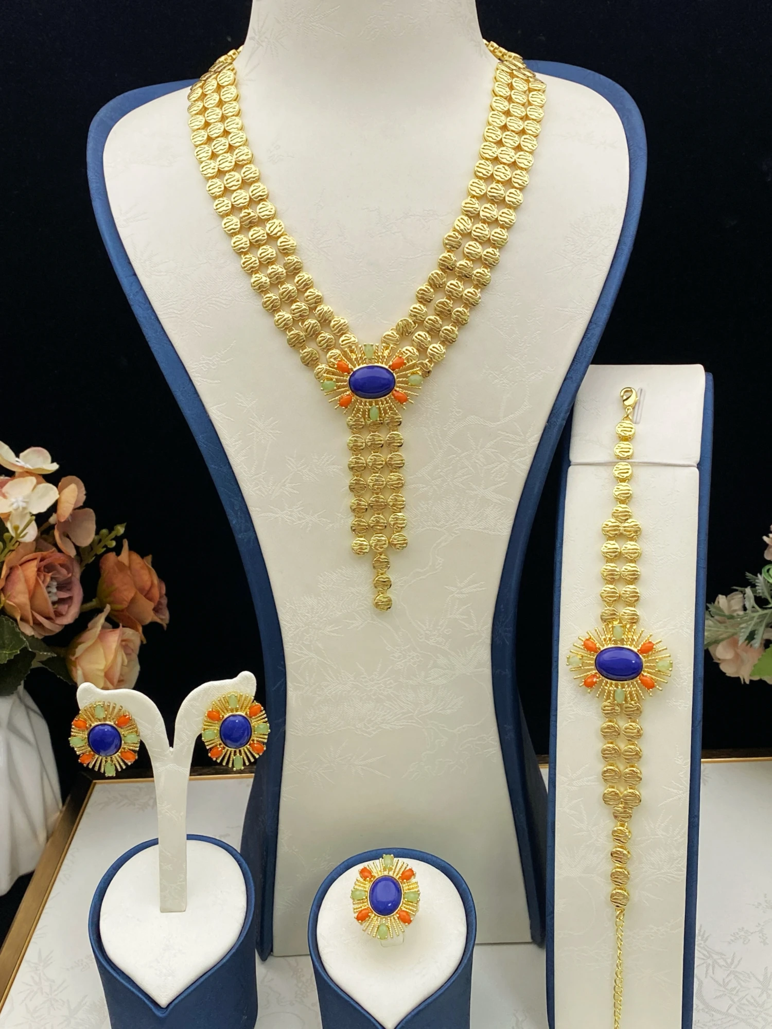 • Luxury Zircon Jewelry Set for Festival Gift, High-End Gold Plated Copper Accessories Full Set for Women